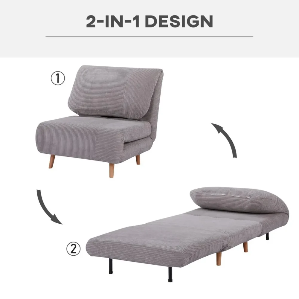 Bli först med att recensera ”2-i-1 Bäddfåtölj & Gästsäng i Grå Manchesterlook | Fällbar Fåtölj med 3-stegs Ryggstöd & Bred Sits | Kapacitet 200 kg (82x89x83 cm)”
