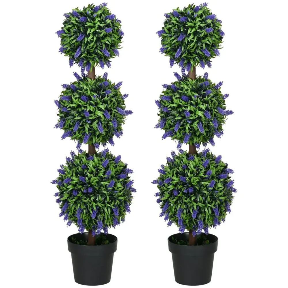 - Autentisk känsla: Varje träd har fylliga blad och livfulla lavendelblommor med en strukturerad yta som efterliknar naturens egna variationer.