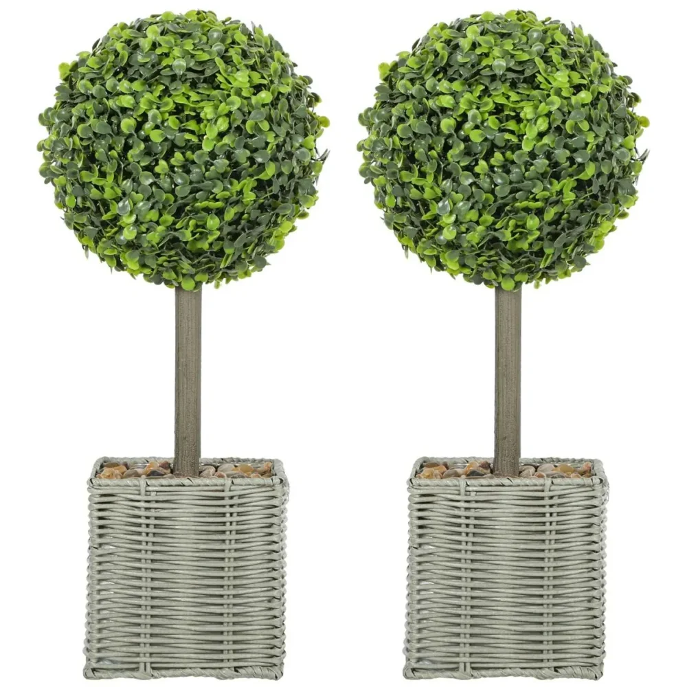 - 2 x Konstgjorda buxbomsväxter monterade i dekorativa krukor