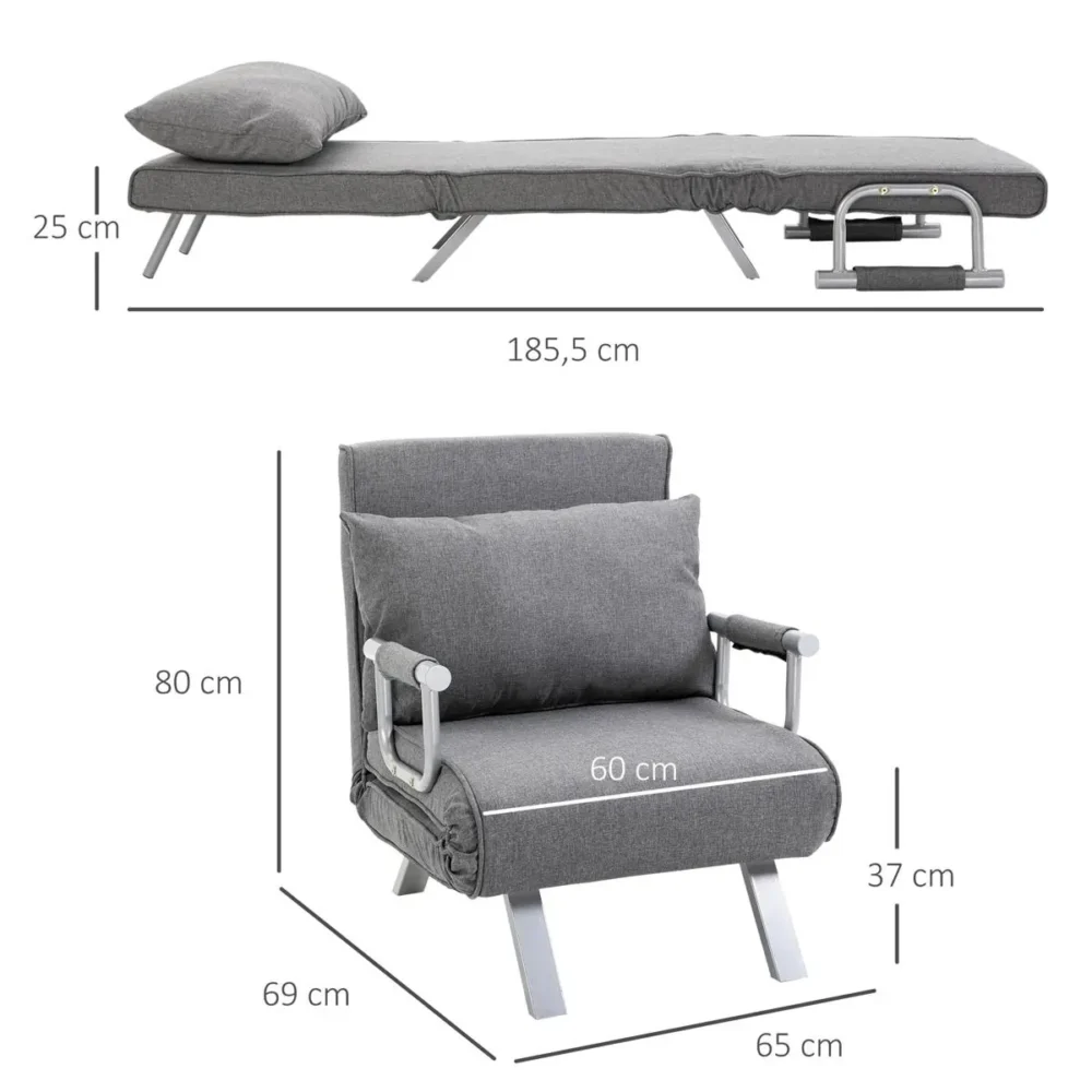 - Flexibel användning: Använd den som en vanlig fåtölj, en avslappnande relaxstol eller fäll ut den helt till en 185,5 cm lång enkelsäng för nattgäster.