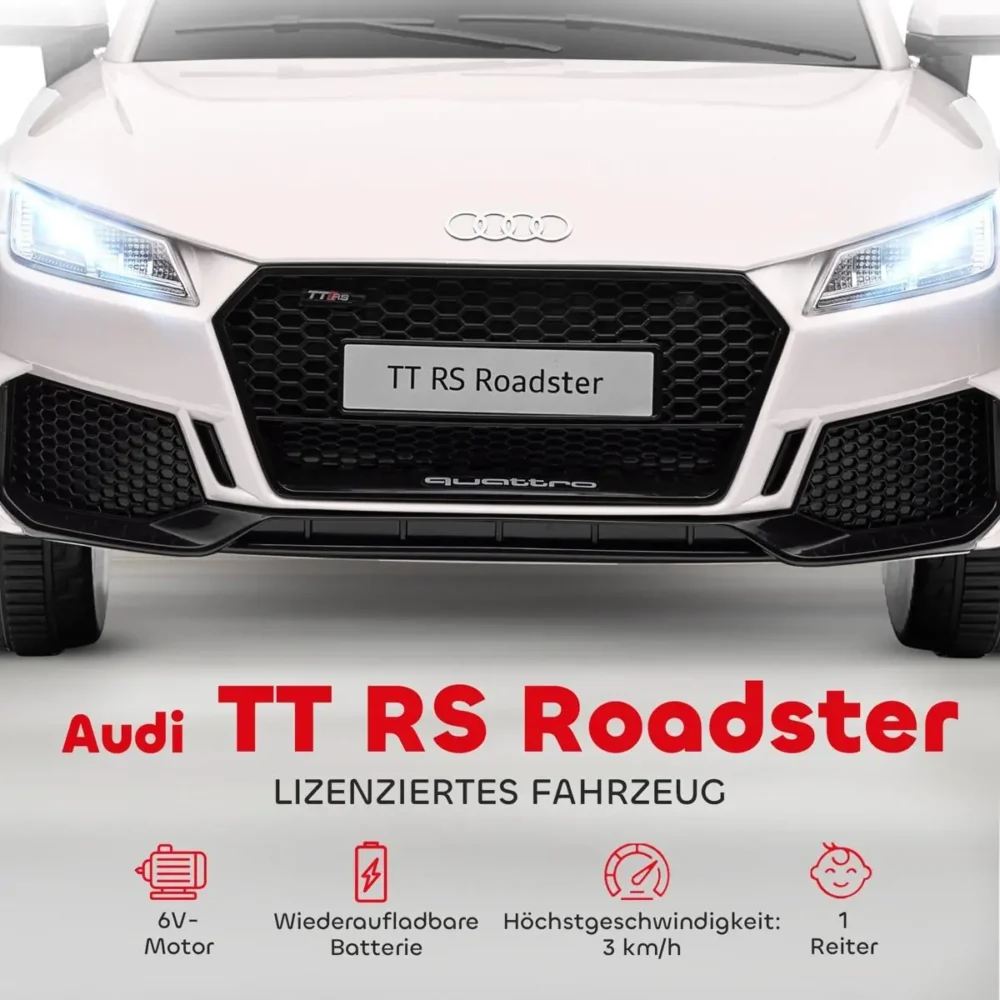 Ge ditt barn chansen att köra med stil i denna officiellt licensierade Audi TT RS elbil. Med sin eleganta vita finish och realistiska detaljer är detta mer än bara en leksak – det är en upplevelse. Bilen är designad för att ge både spänning och säkerhet, vilket gör den till den perfekta gåvan för barn mellan 3 och 5 år.