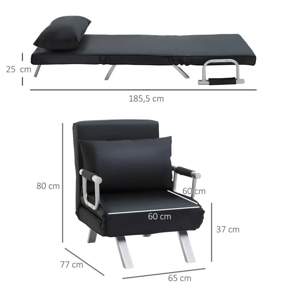 Upplev den perfekta kombinationen av stil och funktionalitet med denna smarta 3-i-1 bäddfåtölj. Oavsett om du bor trångt eller vill vara redo för övernattande gäster, erbjuder denna mångsidiga möbel en elegant lösning. Från en stilren fåtölj till en avkopplande loungemöbel och vidare till en bekväm säng – förvandlingen sker på ett ögonblick. Den svarta klädseln i mockaimitation ger rummet en modern touch samtidigt som den mjuka stoppningen inbjuder till vila.