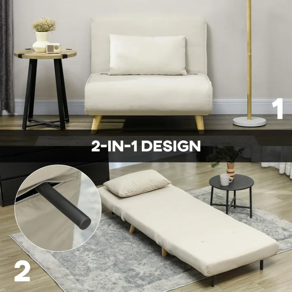 - Mångsidig användning: Fungerar som en elegant fåtölj utan armstöd, en avslappnande liggfåtölj och en praktisk gästsäng för övernattningar.