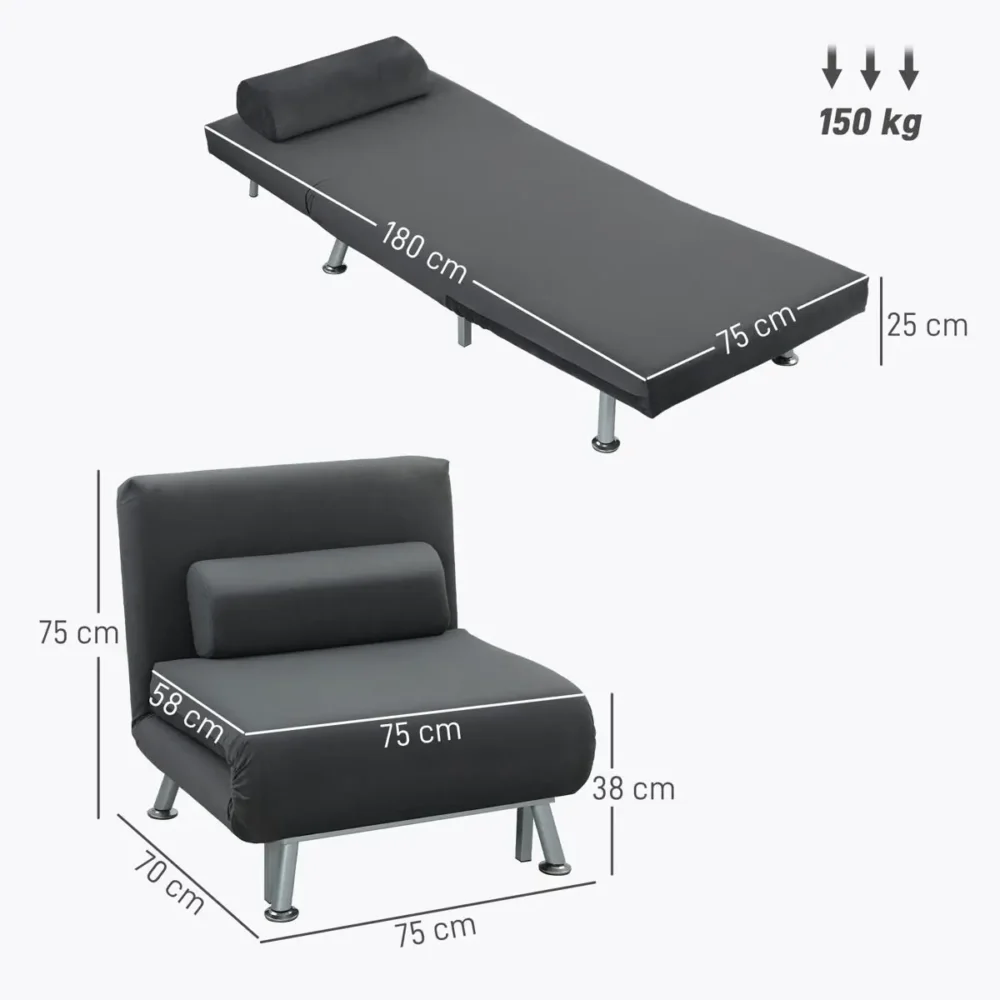 - Mångsidig 2-i-1-lösning: Fungerar utmärkt som både en bekväm relaxfåtölj och en rymlig enkelsäng.