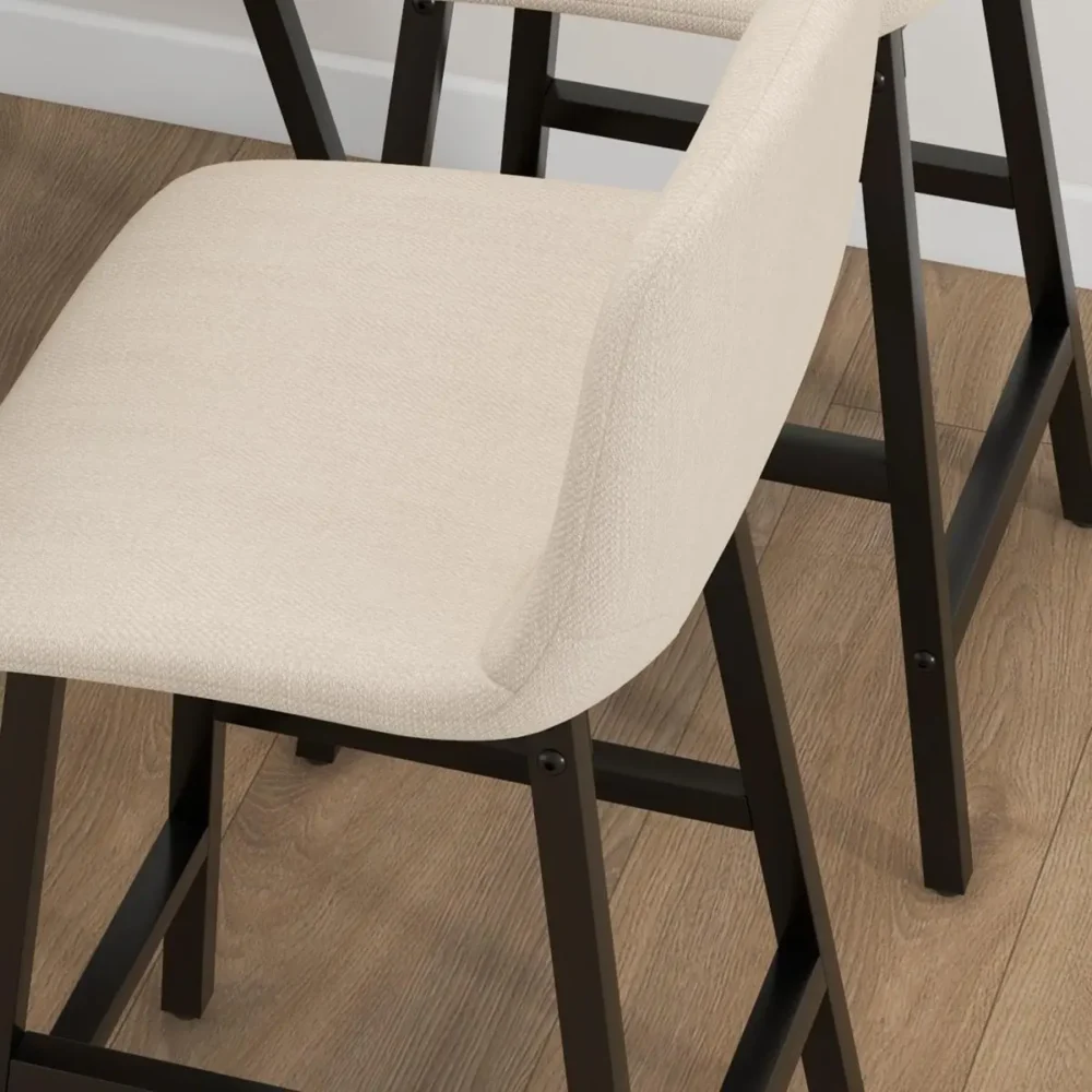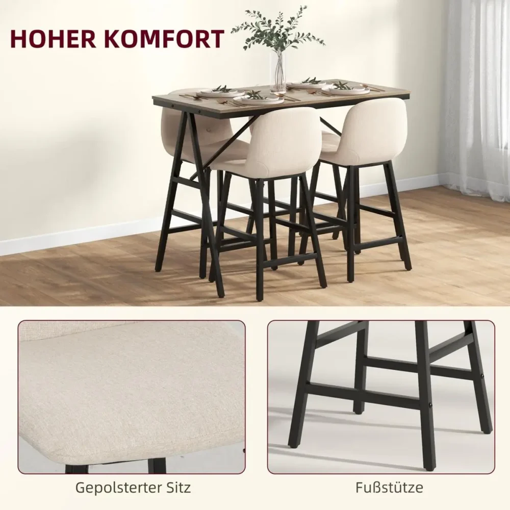 Bli först med att recensera ”Bargrupp med barbord och 4 barstolar – Beige linneoptik med djuphäftade knappar – Modern industriell design för kök och matsal”