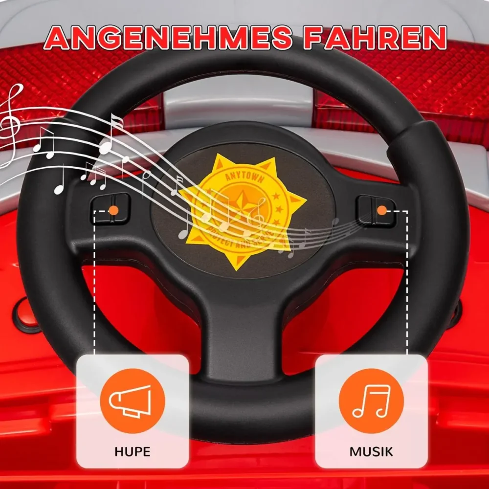 - Enkel manövrering: Barnet kan enkelt köra både framåt och bakåt samt använda tutan och den inbyggda musiken för en roligare åktur.