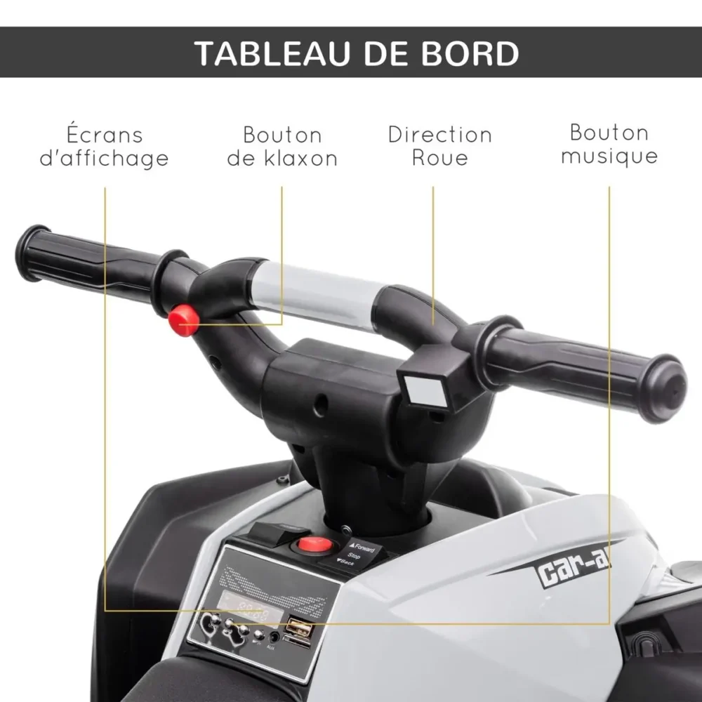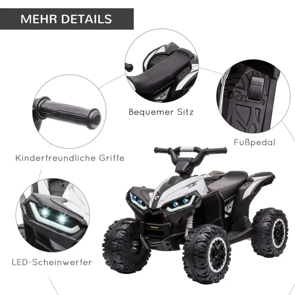 Bli först med att recensera ”El-fyrhjuling för barn 12V med LED-ljus & MP3 – Svart/Vit Elbil för barn 3-5 år (83×53 cm, max 6 km/h)”