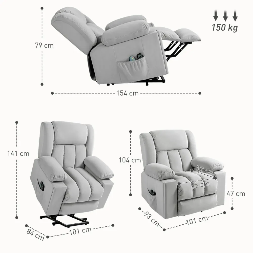 Bli först med att recensera ”Elektrisk Fåtölj med Uppresningshjälp, Massage & Värme – Ljusgrå Sammet med USB-portar & Mugghållare”