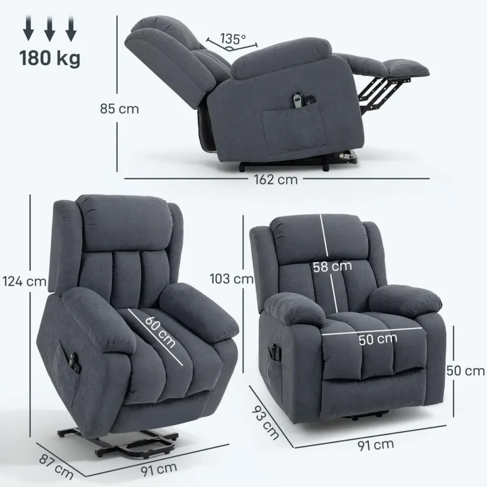 Bli först med att recensera ”Elektrisk fåtölj med uppresningshjälp – Massagefåtölj och seniorfåtölj med liggfunktion, 180 kg, mörkgrå”