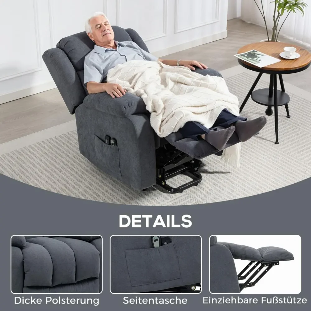 Upplev en ny nivå av självständighet och komfort med vår elektriska fåtölj med uppresningshjälp. Denna multifunktionella relaxfåtölj är speciellt framtagen för att erbjuda maximalt stöd för seniorer eller personer under återhämtning. Med en mjuk lyftfunktion som tippar fåtöljen framåt blir det enklare än någonsin att sätta sig och resa sig utan hjälp från andra.