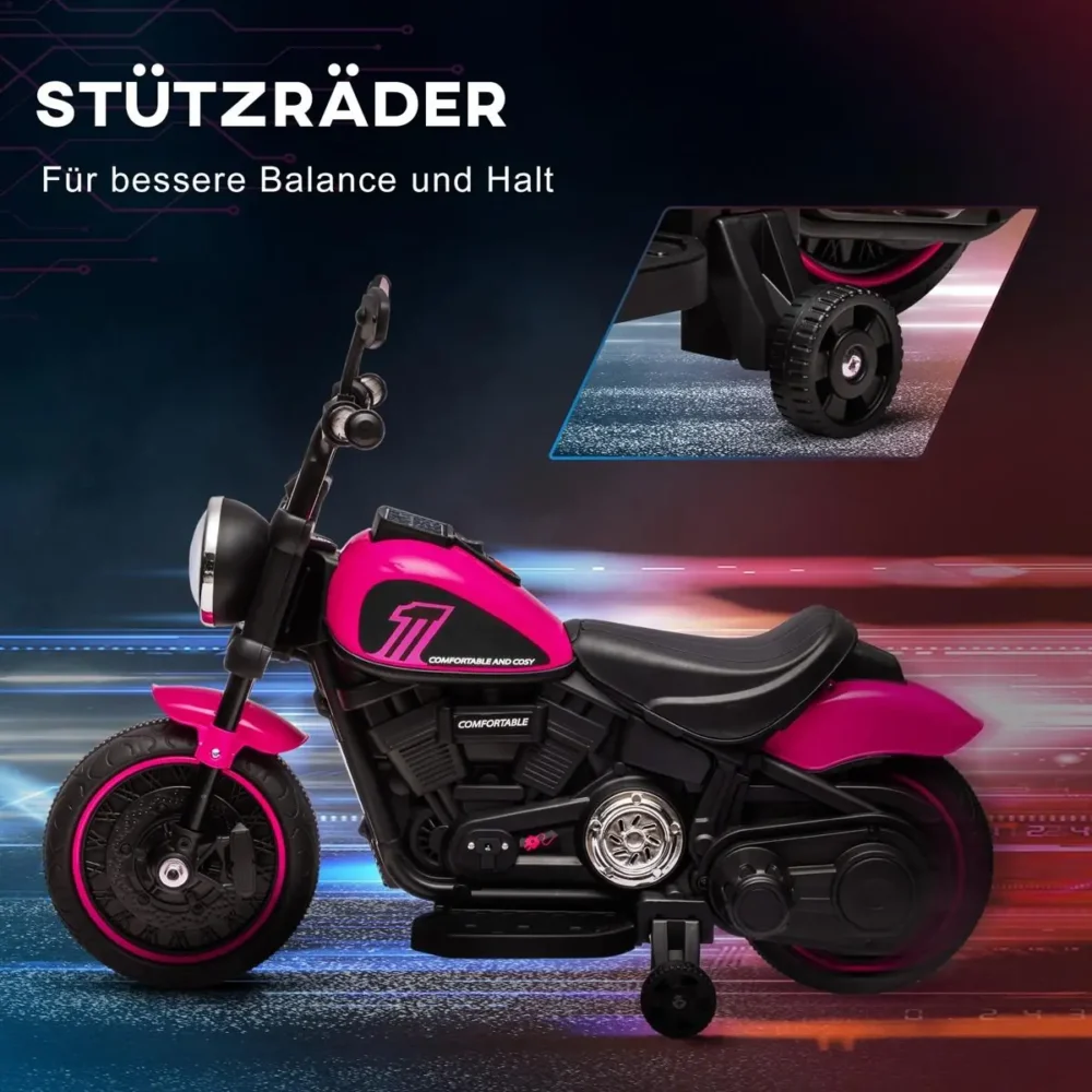 Ge ditt barn en oförglömlig start på sina äventyr med denna högkvalitativa elmotorcykel för barn. Denna rosa modell kombinerar högsta säkerhet med ren körglädje, och är perfekt anpassad för små förare mellan 18 och 36 månader som vill utforska sin omgivning på ett tryggt och inspirerande sätt.