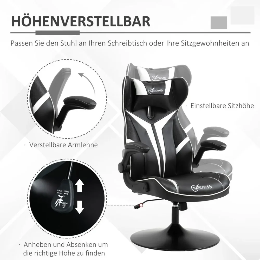 Bli först med att recensera ”Ergonomisk Gamingstol med Nackstöd & Gungfunktion – Höj- och sänkbar Gamerstol för Kontor & E-sport, Svart/Vit”