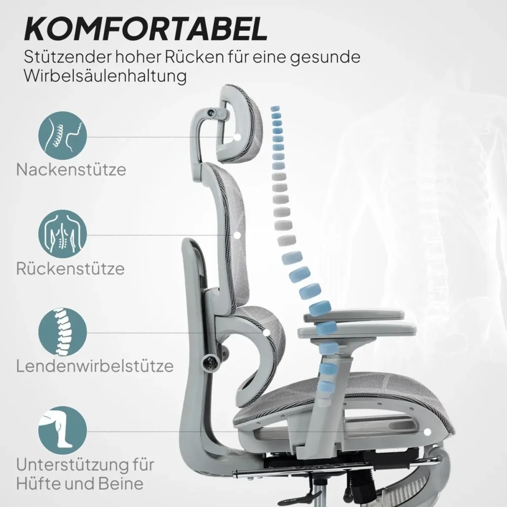 Bli först med att recensera ”Ergonomisk Kontorsstol med Fotstöd & Nackstöd – Justerbar Skrivbordsstol i Grått Nättyg”