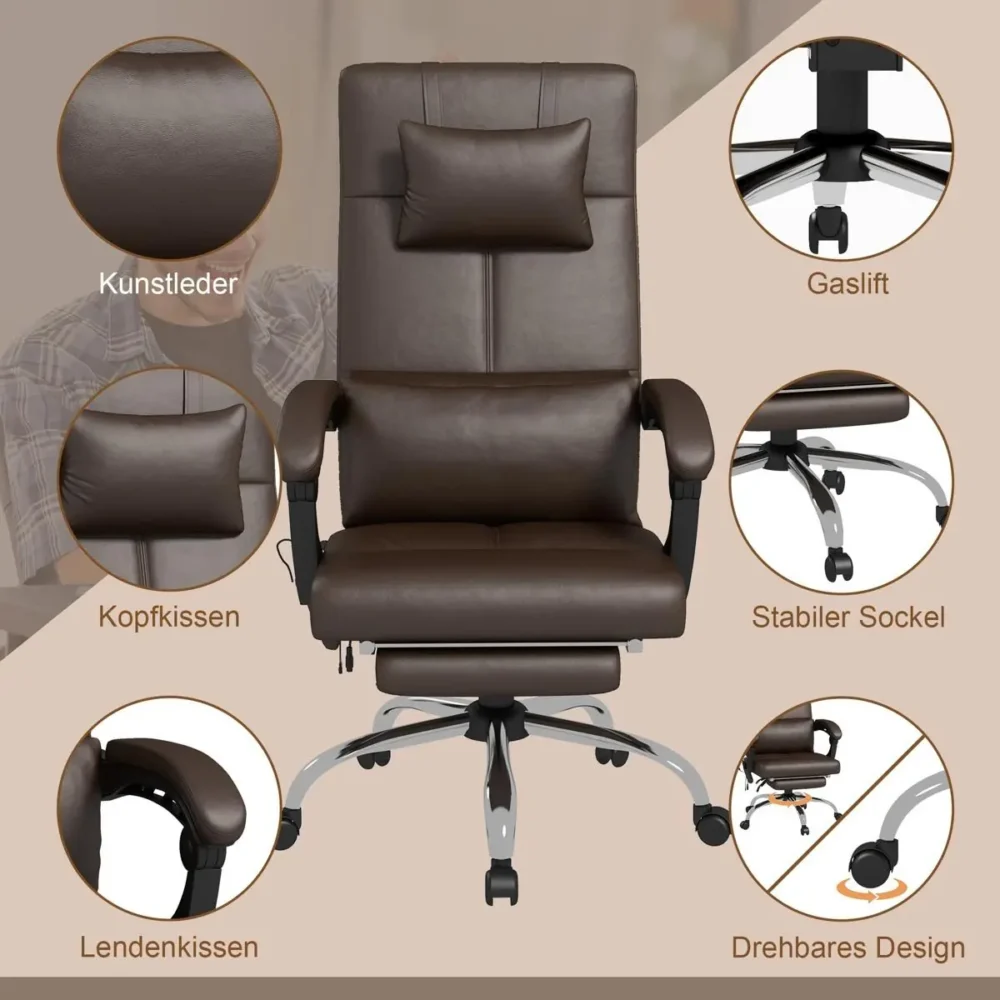 Bli först med att recensera ”Ergonomisk Kontorsstol med Massage, Fotstöd & Värme – Brun Skrivbordsstol med Liggfunktion, Nackkudde & Justerbar Höjd”