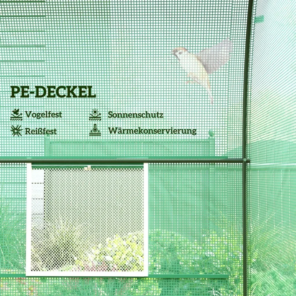 - Väderbeständig PE-folie: Det förstärkta överdraget av 140 g/m² PE-plast är både vattenavvisande och UV-beständigt för långvarig användning.