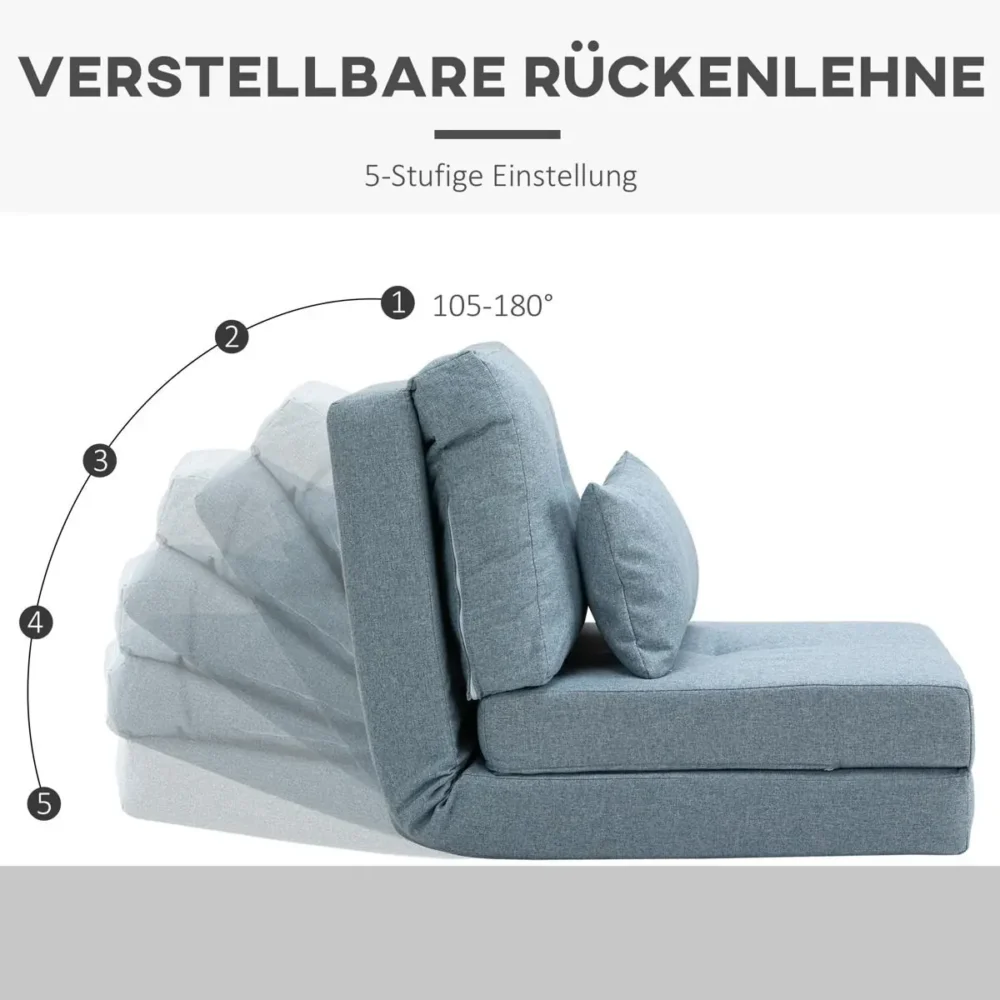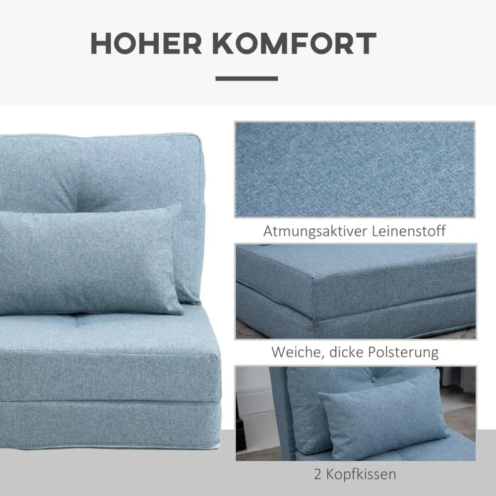 Denna eleganta himmelsblå golvfåtölj är den ultimata lösningen för dig som söker flexibilitet, stil och komfort i ett. Med sin innovativa 2-i-1-design fungerar den lika bra som en ergonomisk sittmöbel för gaming och TV-tittande som en praktisk gästsäng för nattgäster. Den generösa stoppningen och det högkvalitativa linnetyget skapar en inbjudande oas för avkoppling i vardagsrummet, barnrummet eller gästrummet.