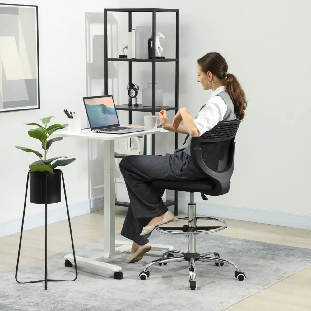 Uppgradera din arbetsplats med denna högkvalitativa kontorsstol, speciellt designad för höga arbetsbord och ståskrivbord. Genom att kombinera ergonomisk design med flexibla inställningar ger denna stol dig den support du behöver för att bibehålla en god hållning och produktivitet vid högre arbetsytor.