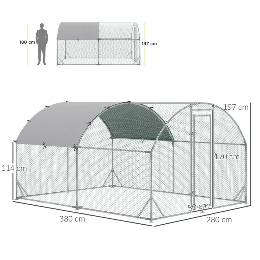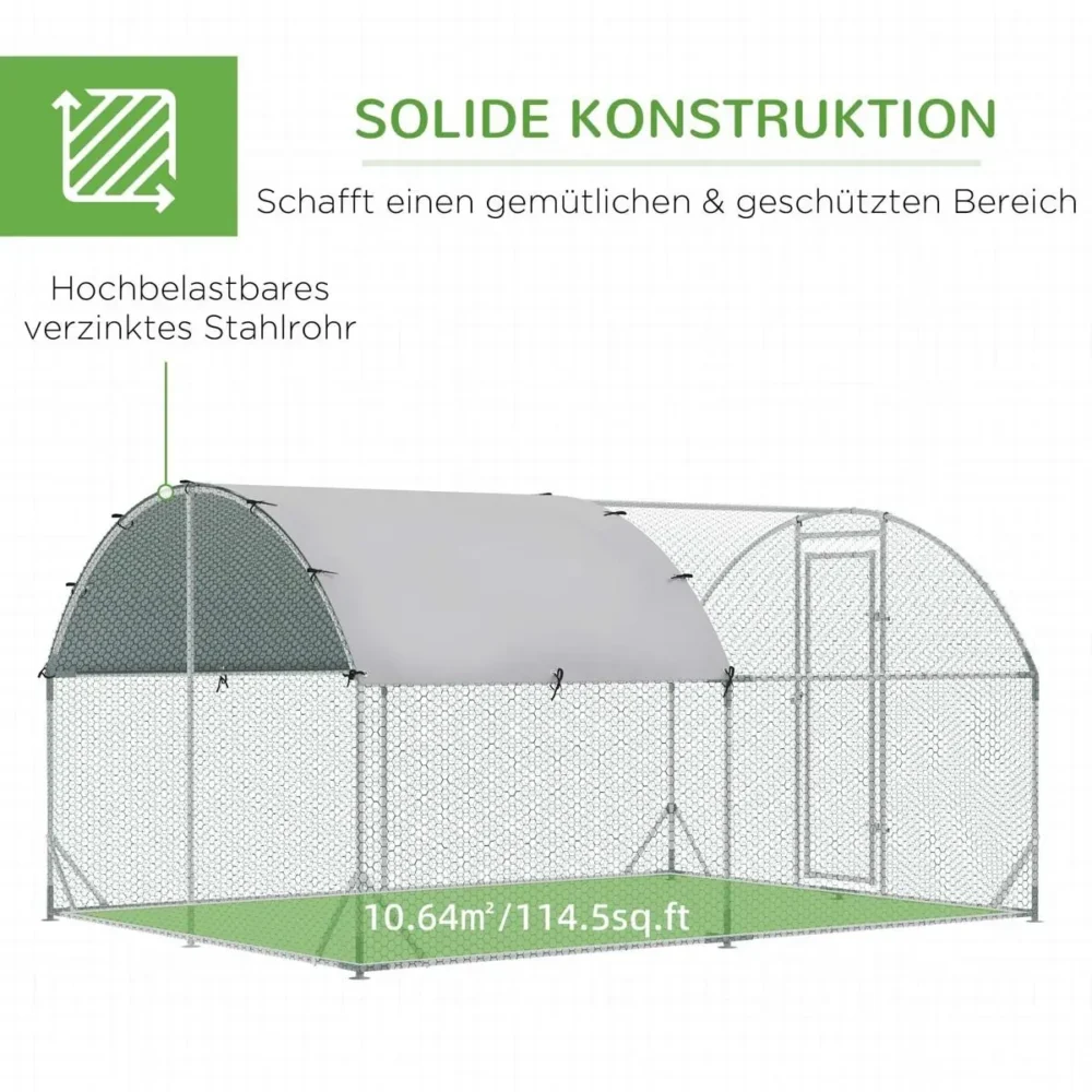 Bli först med att recensera ”Hönshage & Smådjurshage 2,8×3,8m – Stabil Rastgård i Galvaniserat Stål med Vattenavvisande Tak för 6-12 Höns, Kaniner och Ankor”