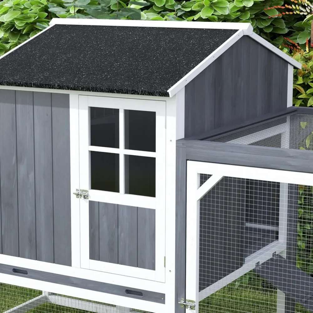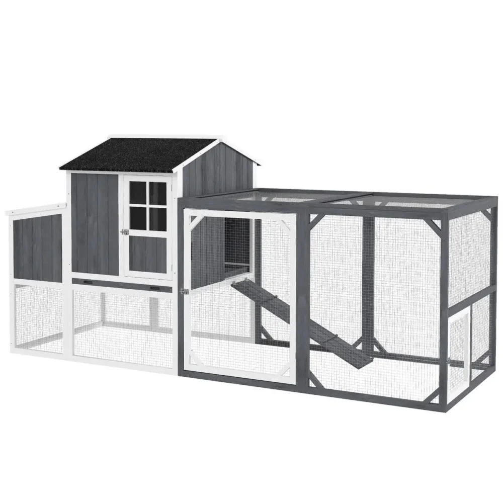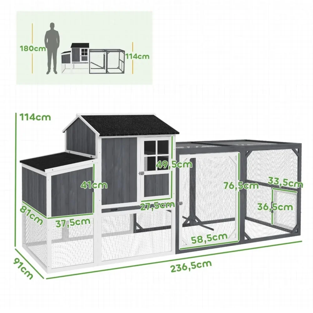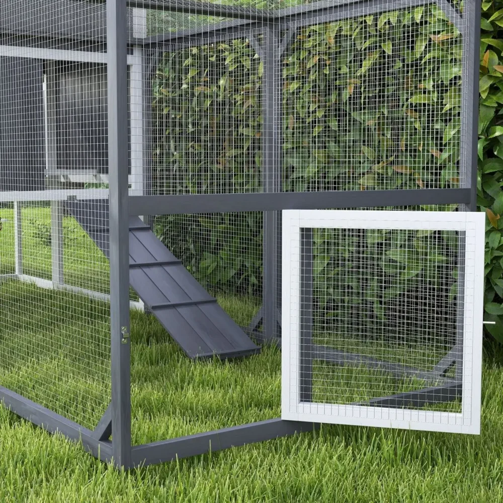 - Hög tillgänglighet: Flera dörrar och en praktisk ramp till huvudbyggnaden säkerställer att hönsen enkelt kan ta sig in och ut.