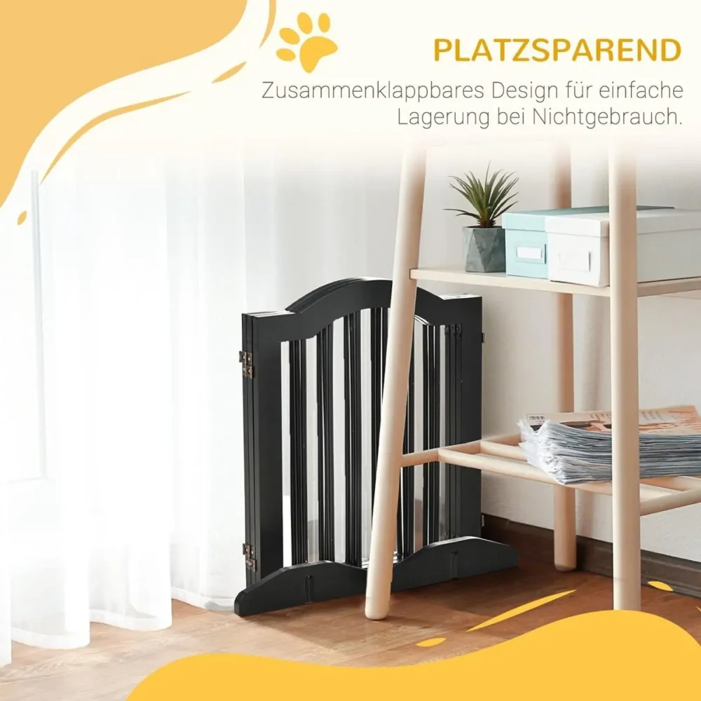 Skapa en trygg och kontrollerad miljö för din fyrbenta vän med denna stilrena 3-delade hundgrind. Oavsett om du behöver skärma av trappan, köket eller hallen, erbjuder denna fristående säkerhetsgrind en flexibel lösning som inte kräver borrning eller fast installation. Med sin eleganta svarta finish och robusta konstruktion i massivt trä kombinerar den maximal säkerhet med modern estetik för ditt hem.