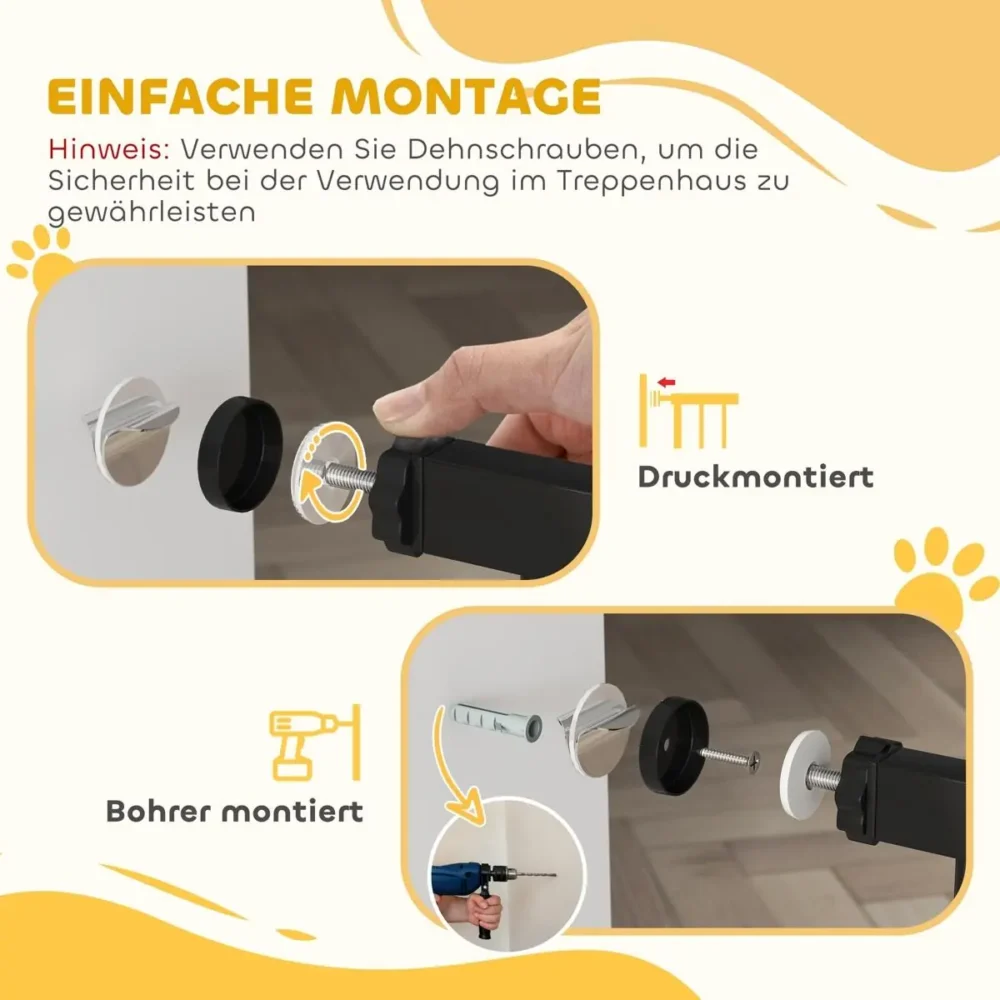 Skapa en trygg och begränsad yta för ditt husdjur med denna högkvalitativa hundgrind i elegant svart design. Grinden är tillverkad av robust stål och slitstark ABS-plast, vilket ger en stabil konstruktion som står pall för vardagens påfrestningar. Med sin smarta klämmontering är detta den perfekta lösningen för dig som vill ha säkerhet utan att behöva göra permanenta ingrepp eller borra hål i väggarna.