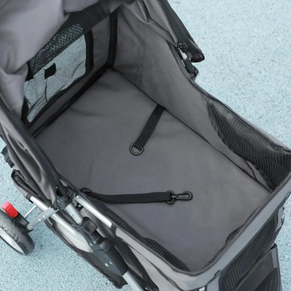 Ge ditt husdjur den ultimata kombinationen av frihet och komfort med denna eleganta, mörkgrå hundvagn. Denna hopfällbara hundbuggy är den idealiska lösningen för äldre hundar, valpar eller djur under återhämtning som behöver extra stöd vid längre sträckor. Med en robust konstruktion och genomtänkta detaljer blir varje utflykt en njutning för både ägare och djur.