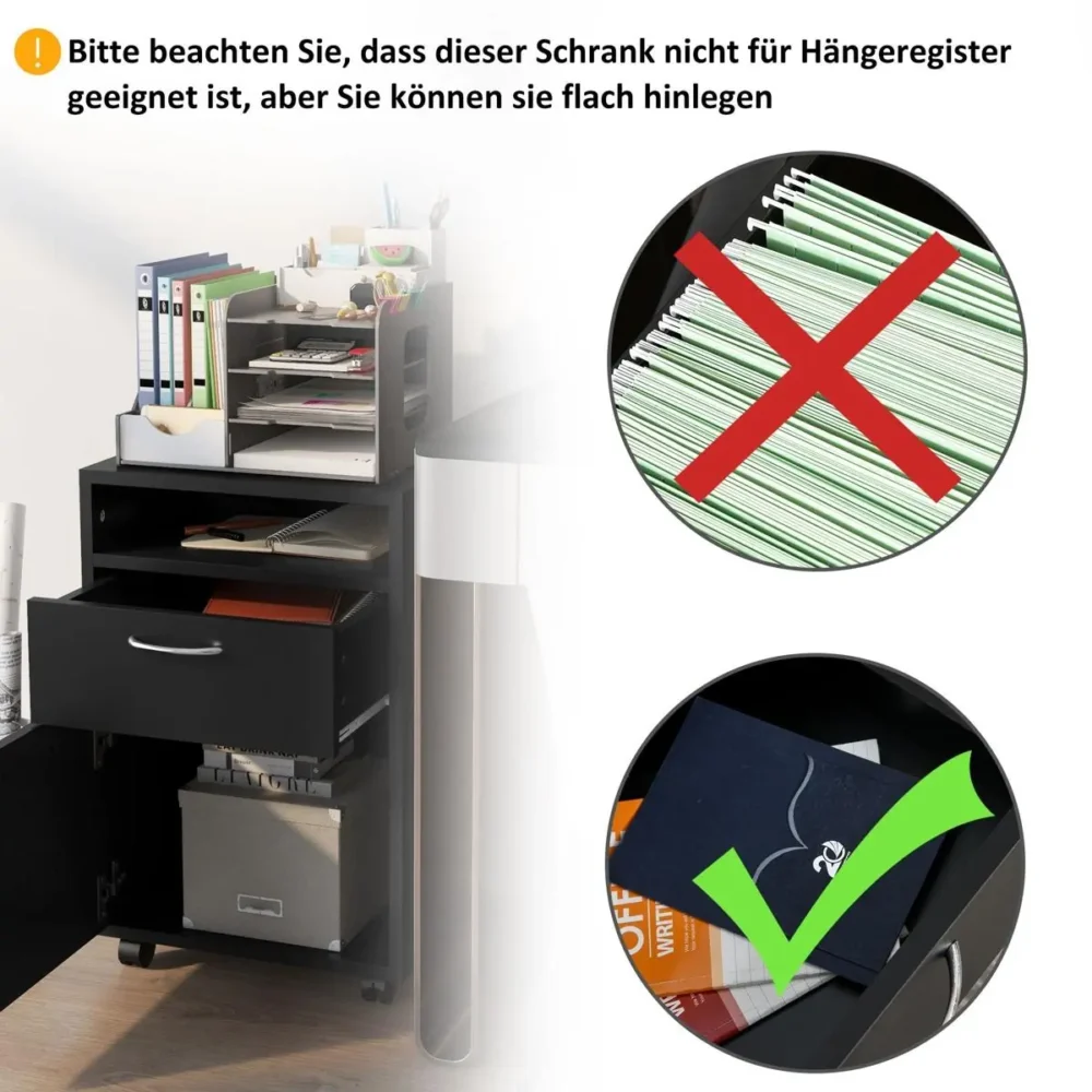 Bli först med att recensera ”Hurts på hjul – Svart Lådhurts & Kontorsskåp med 1 Låda och 1 Hylla – Smidig Rullhurts för dokument och pärmar, 40x35x60 cm”