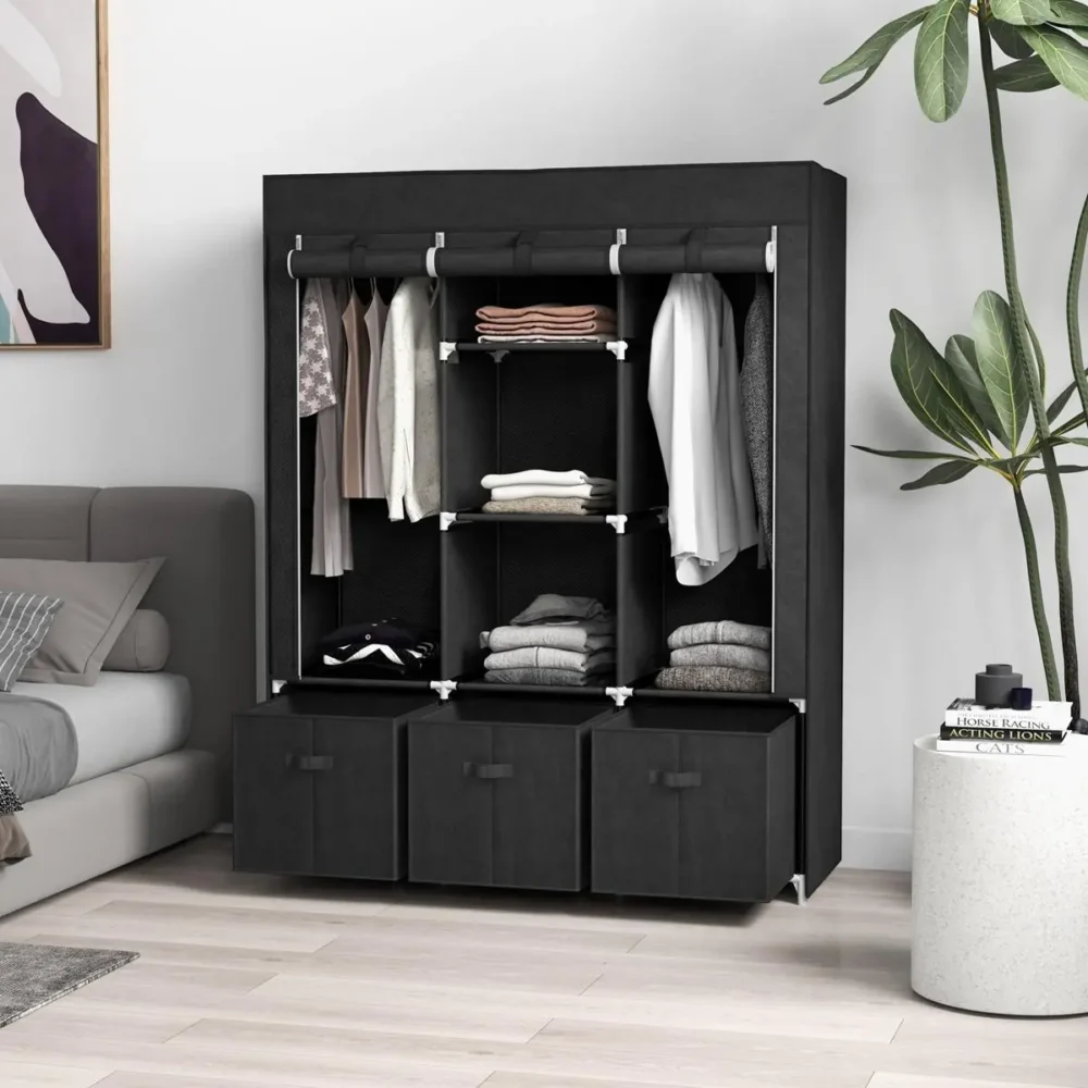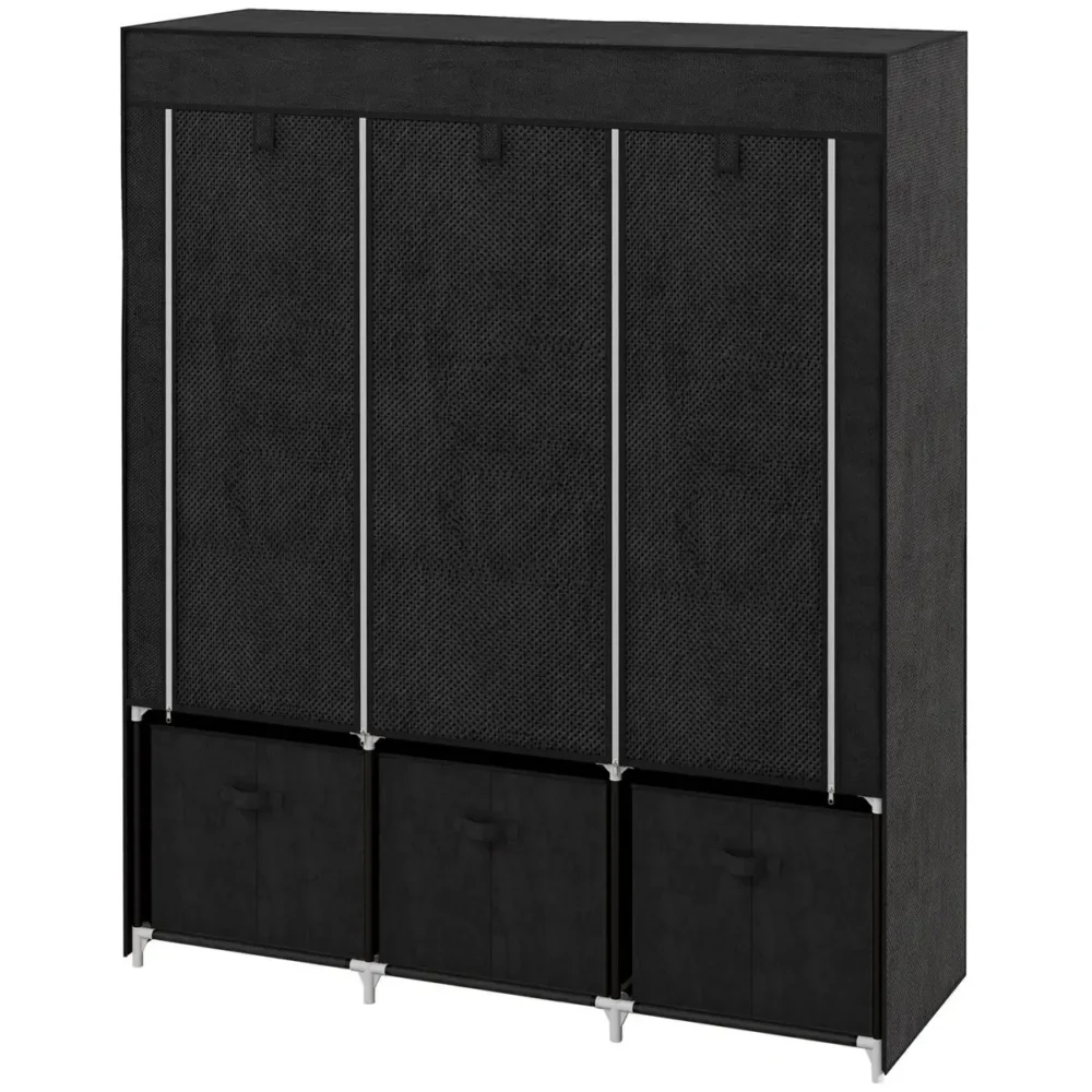 Bli först med att recensera ”Ihopfällbar Tyggarderob med 3 Lådor & 2 Klädstänger – Svart Klädförvaring 125x43x162,5 cm – Stabil Garderob i Tyg”