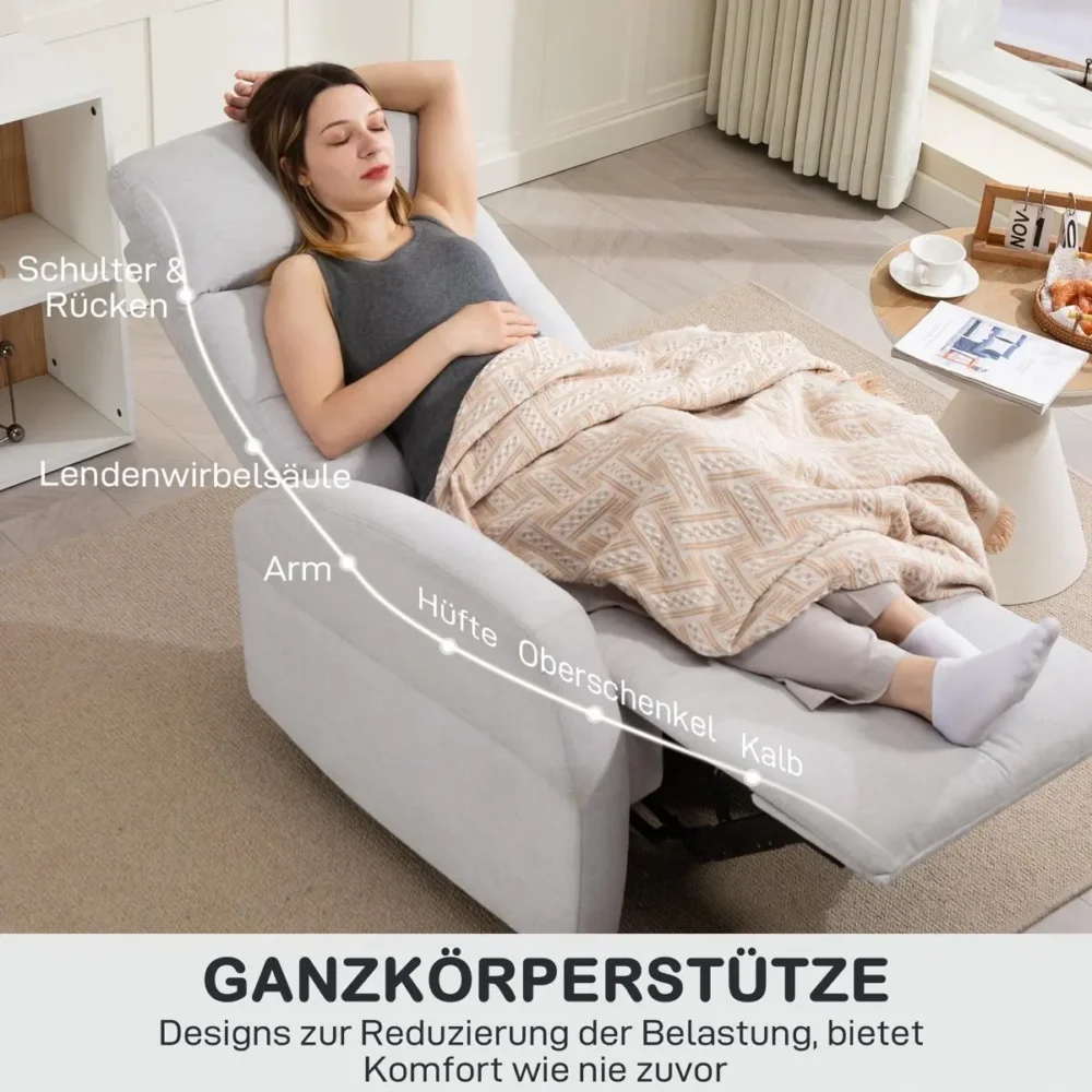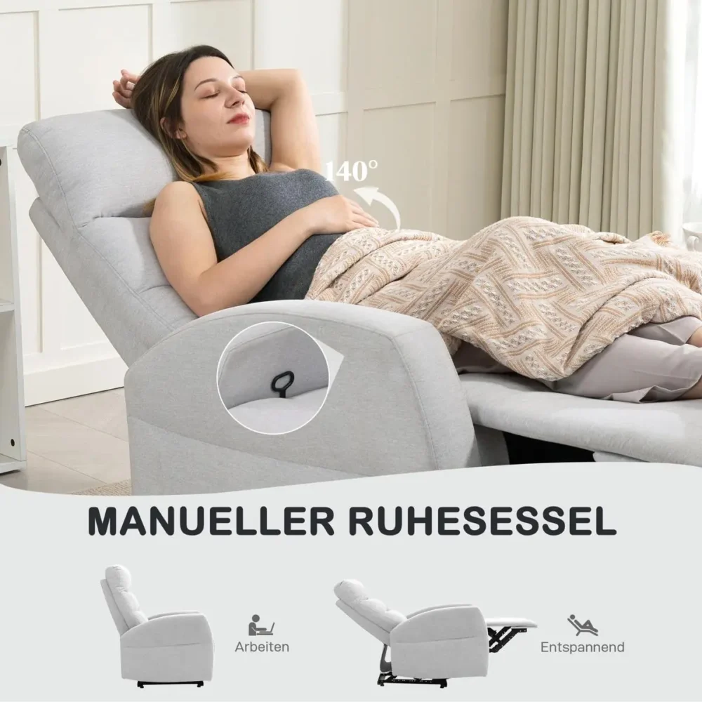 Bli först med att recensera ”Justerbar Relaxfåtölj med Fotstöd – Modern Recliner i Ljusgrå Linnekänsla – 140° Lutning & Maxlast 150 kg”