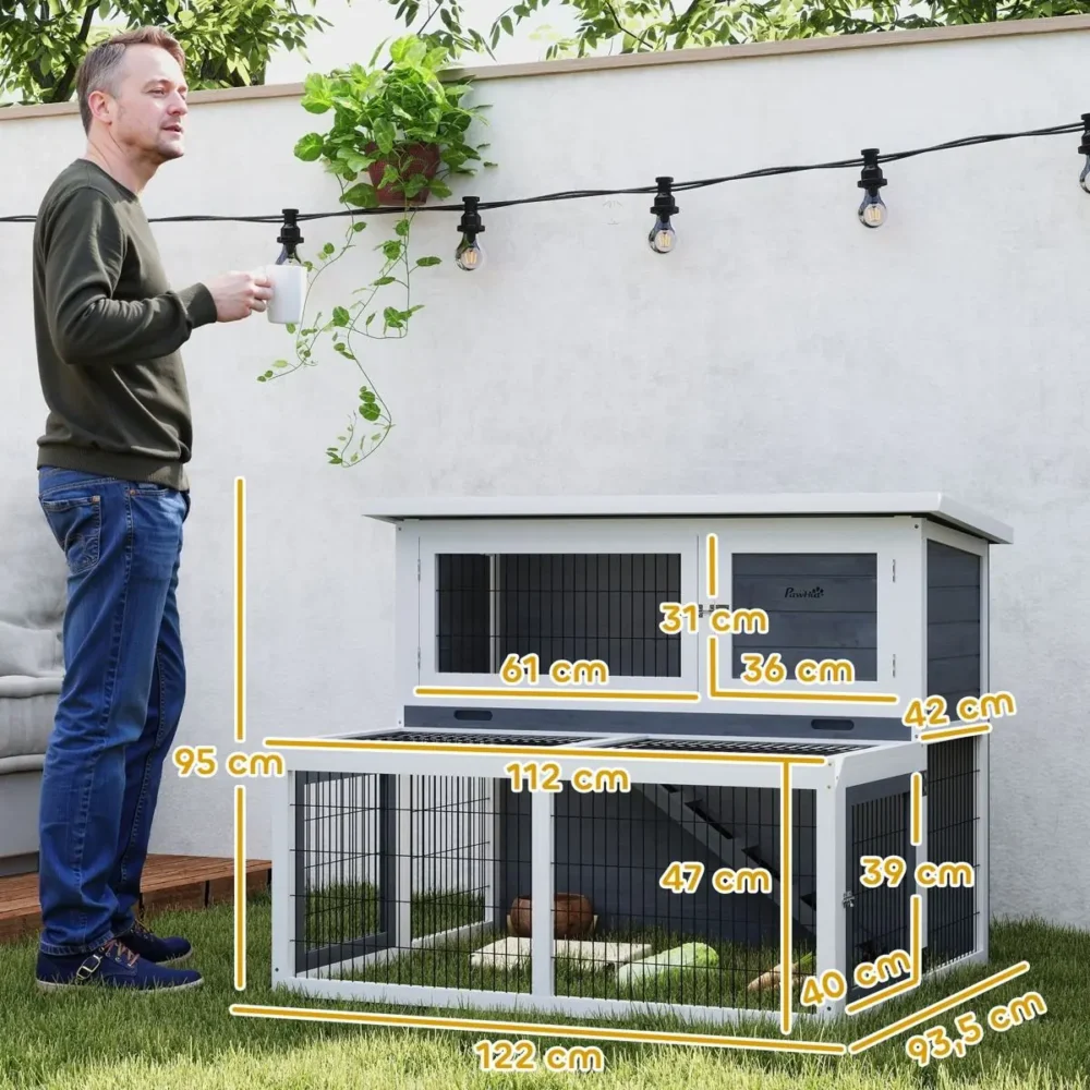 Bli först med att recensera ”Kaninbur 2 våningar med öppningsbart tak – Vinterbonad utomhusbur i massivt trä för 2-3 kaniner, Grå, 122x95x93,5 cm”