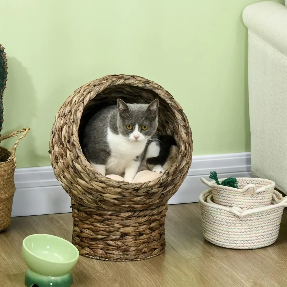 - Hållbart naturmaterial: Flätad vattenhyacint ger en klassisk stil och en organisk känsla som katter älskar.