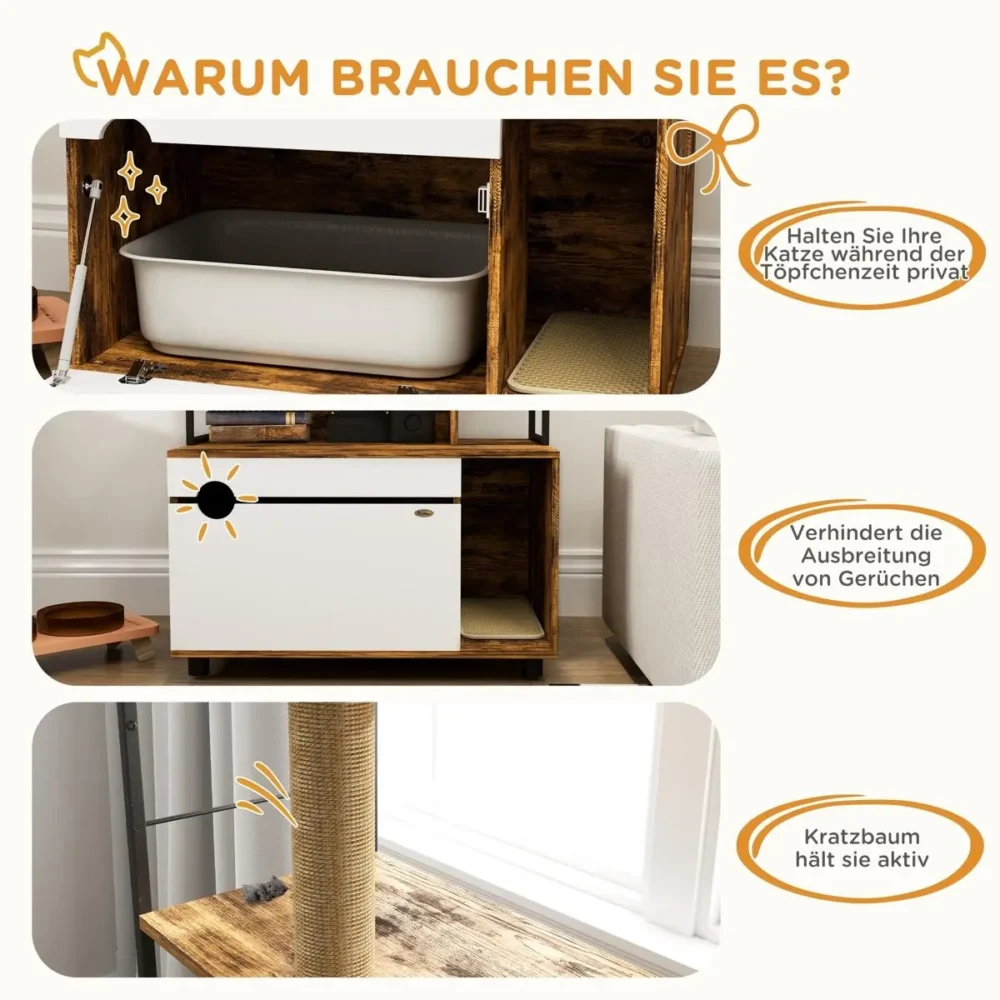 - Multifunktionell design: Kombinerar ett dolt kattlådeskåp med en förvaringshylla i tre nivåer för maximal yteffektivitet i hemmet.