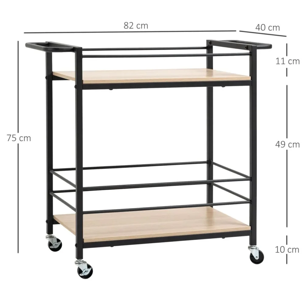 Bli först med att recensera ”Köksvagn med 2 Hyllplan och Skyddsräcke – Serveringsvagn på Hjul i Svart Stål och Trä – 82 x 40 x 75 cm”