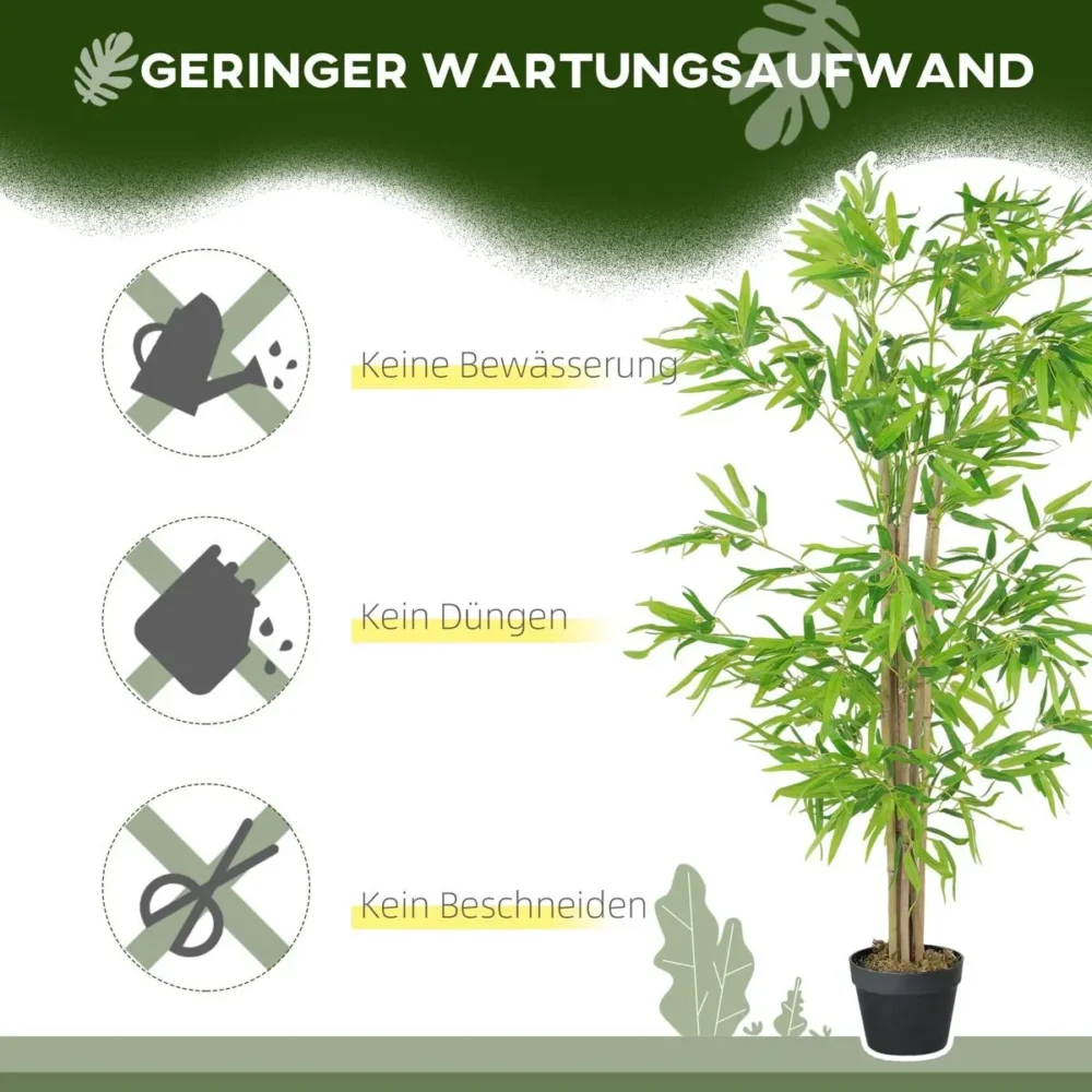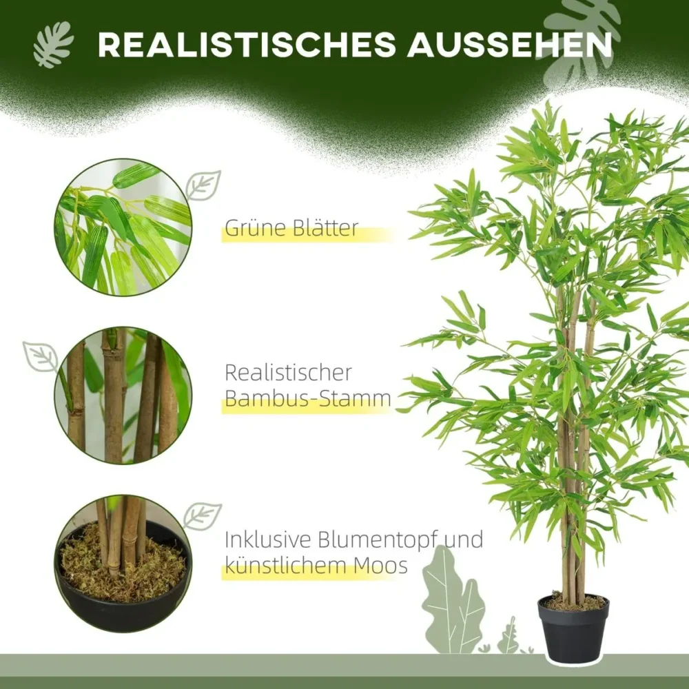 Ge ditt hem eller kontor en naturlig och fräsch känsla med vår exklusiva konstgjorda bambu. Detta naturtrogna konstträd är den perfekta inredningsdetaljen för dig som älskar grönska men vill slippa kraven på skötsel och bevattning. Med en imponerande höjd på 150 cm och hela 644 individuellt målade blad, skapar denna bambuväxt en omedelbar känsla av lugn och harmoni i alla typer av rum.