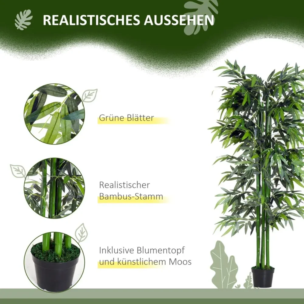 Ge ditt hem eller kontor en tidlös känsla av naturlig grönska med denna naturtrogna konstgjorda bambu. Med en imponerande höjd på 180 cm fungerar detta konstgjorda träd som ett perfekt blickfång som omedelbart bidrar till en fridfull och harmonisk atmosfär. Tack vare det extremt detaljrika bladverket och de realistiska stammarna får du all skönhet från en äkta bambu, men utan de krav på skötsel och solljus som levande växter medför.