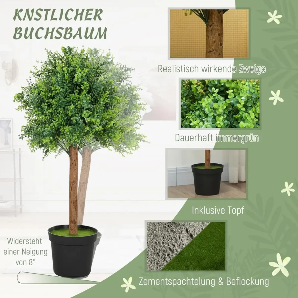 - Högkvalitativa material: De 441 ovala PE-bladen är noggrant utformade för att efterlikna en äkta buxbom in i minsta detalj.