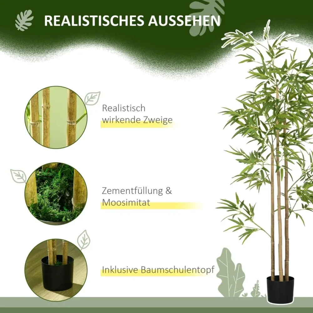 Ge ditt hem eller kontor en lyft med denna imponerande konstväxt i form av bambu. Med en höjd på 180 cm fungerar den som en naturlig blickfångare som sprider lugn och harmoni i allt från vardagsrum till konferensrum. Denna verklighetstrogna växt är speciellt framtagen för att erbjuda perfekt realism utan att kräva några gröna fingrar, vilket gör den idealisk för platser med begränsat dagsljus eller för allergiker.