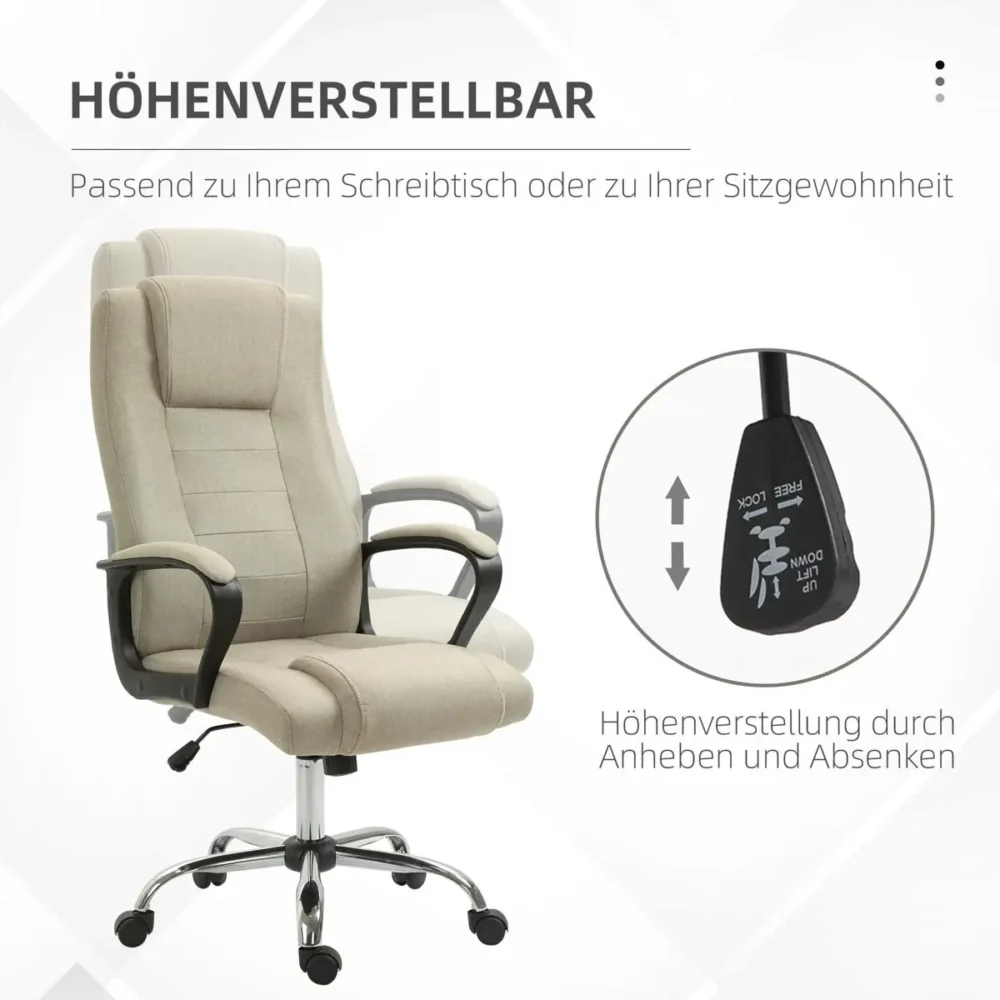 Bli först med att recensera ”Kontorsstol i Beige Linnelook – Ergonomisk Skrivbordsstol med Gungfunktion och Justerbar Höjd (Max 120 kg)”
