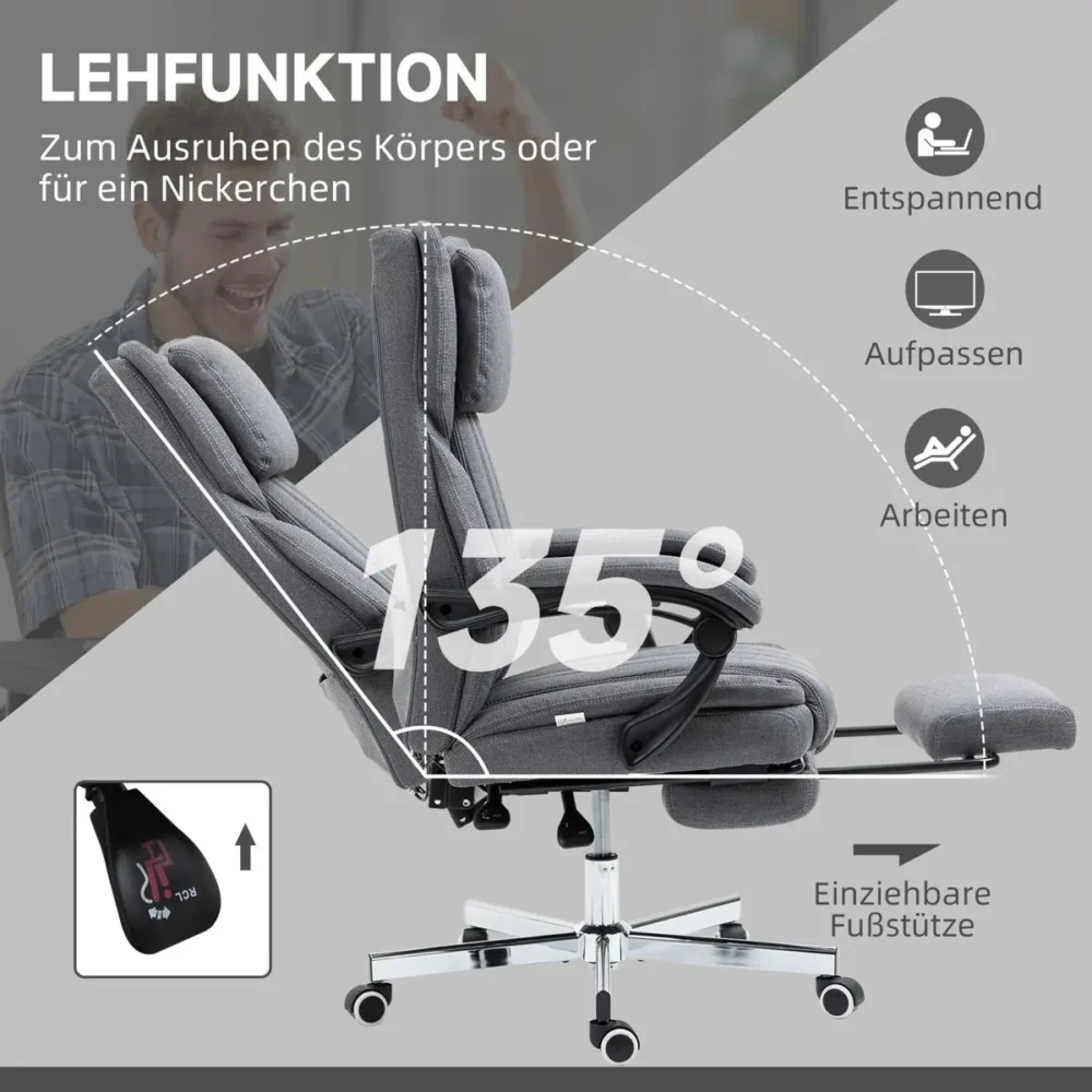 Bli först med att recensera ”Kontorsstol med Massagefunktion & Fotstöd – Ergonomisk Skrivbordsstol i Grå Linnelook – Justerbar med 6-punkts Vibration”
