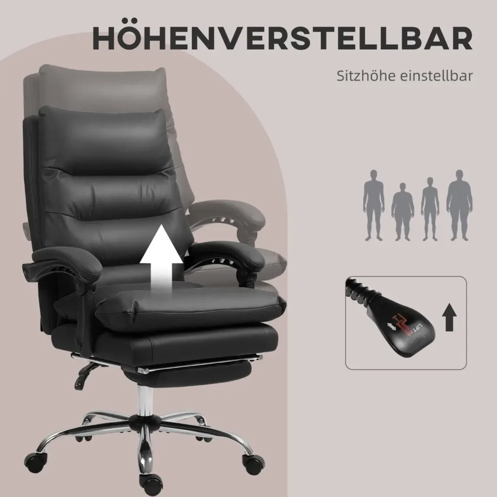 Bli först med att recensera ”Kontorsstol med massagefunktion och värme – Ergonomisk skrivbordsstol i svart mikrofiber med fotstöd och 135° lutning – Upp till 120 kg”