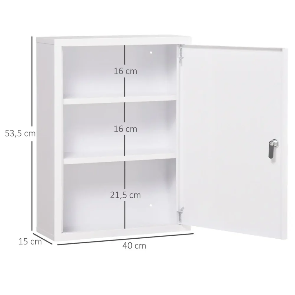Bli först med att recensera ”Låsbart Medicinskåp i Vit Stål – Väggmonterat Första Hjälpen-skåp med 3 Fack (40 x 15 x 53,5 cm)”