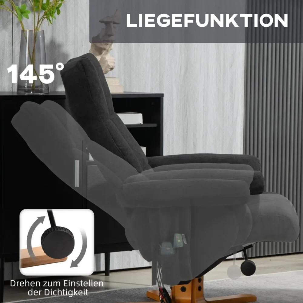 Bli först med att recensera ”Massagefåtölj med 10-punktsmassage, liggfunktion och fotpall med förvaring – Svart ergonomisk fåtölj i polyester (145° lutning)”