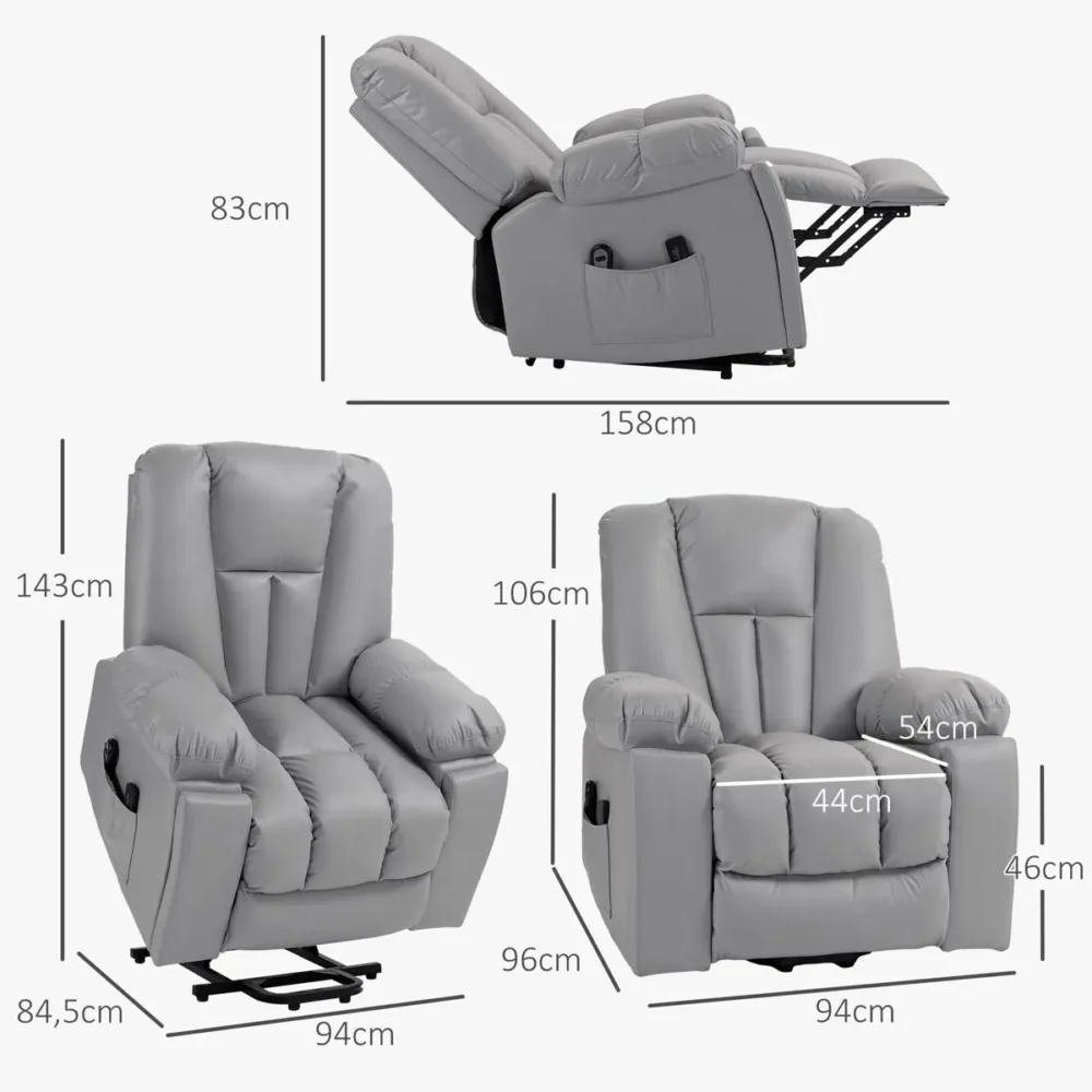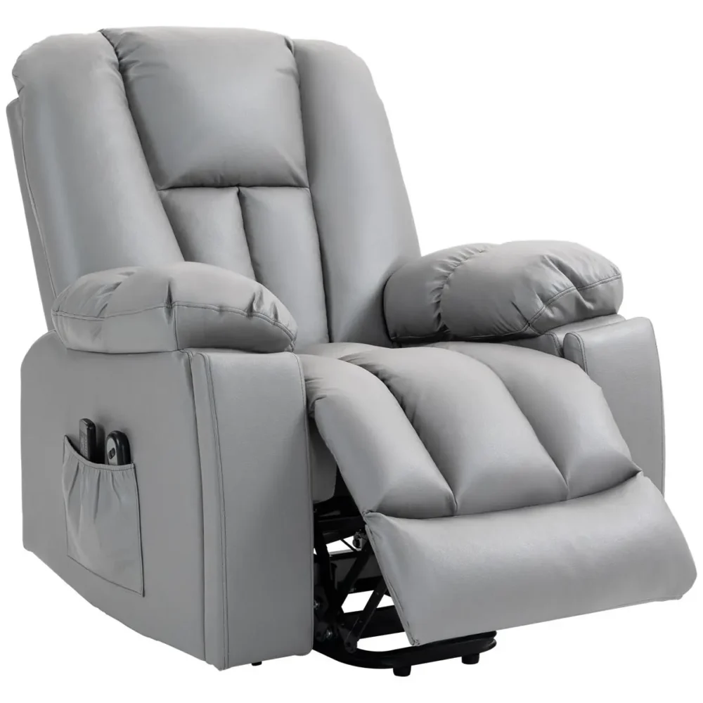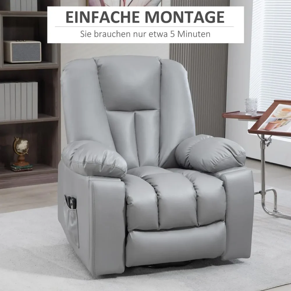 Upplev ultimat vardagskomfort med denna elektriska massagefåtölj, specifikt framtagen för att ge både stöd och avkoppling. Denna multifunktionella seniorfåtölj kombinerar en kraftfull uppresningshjälp med avancerad massagefunktion, vilket ger ökad självständighet för personer med nedsatt rörlighet eller under rehabilitering. Den eleganta mörkgrå finishen i läderliknande mikrofiber är både estetiskt tilltalande och extremt lättskött.