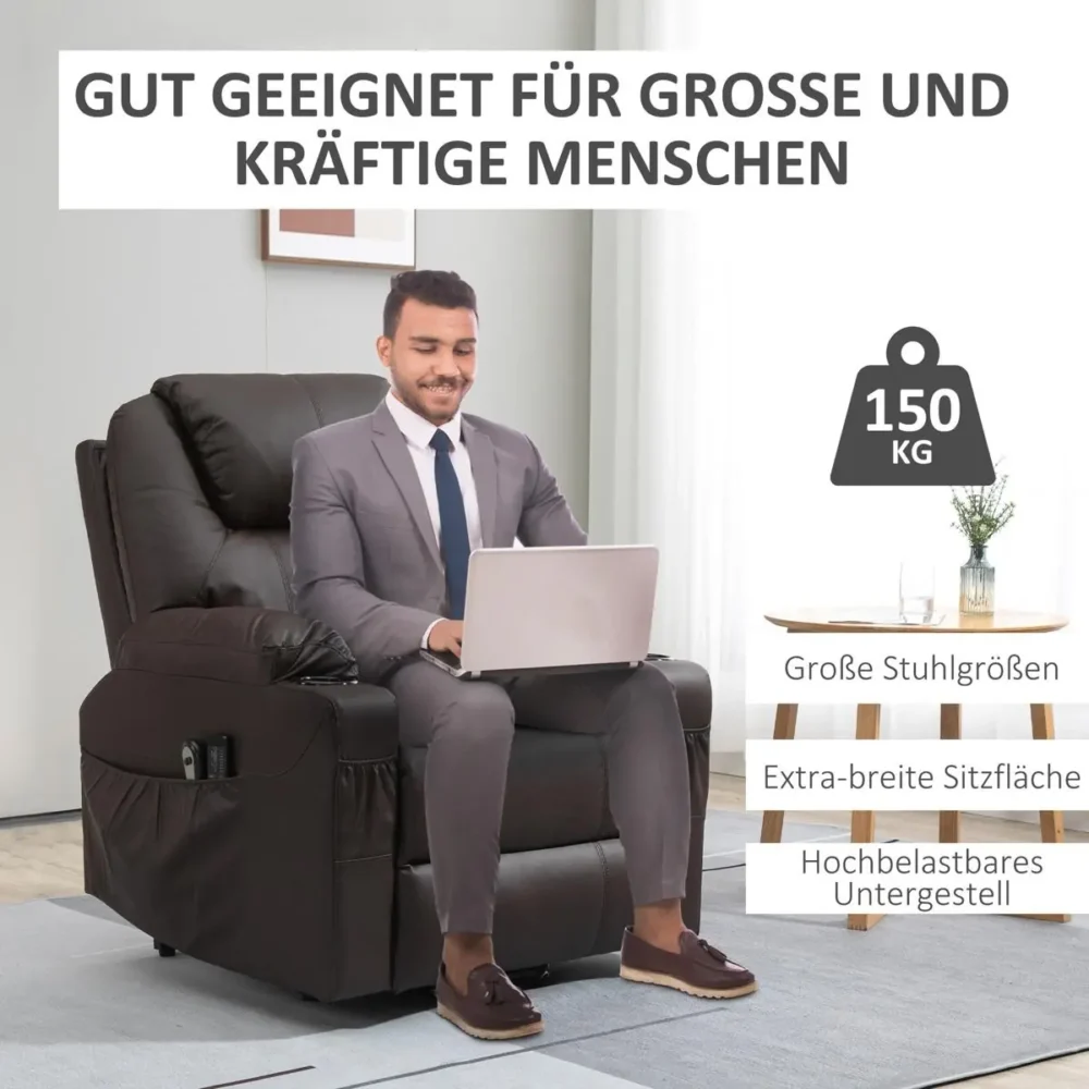 Bli först med att recensera ”Massagefåtölj med uppresningshjälp och massage – Seniorfåtölj i brunt konstläder med liggfunktion och vibrationsmassage, max 150 kg”