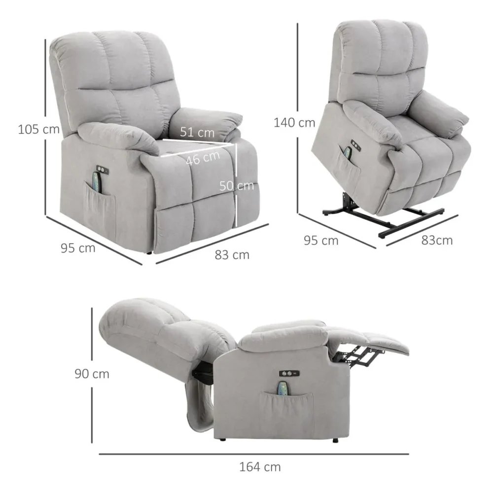 Bli först med att recensera ”Massagefåtölj med Uppstigningshjälp & USB – Grå Relaxfåtölj i Sammetslook med 160° Liggvinkel & 8 Vibrationspunkter”