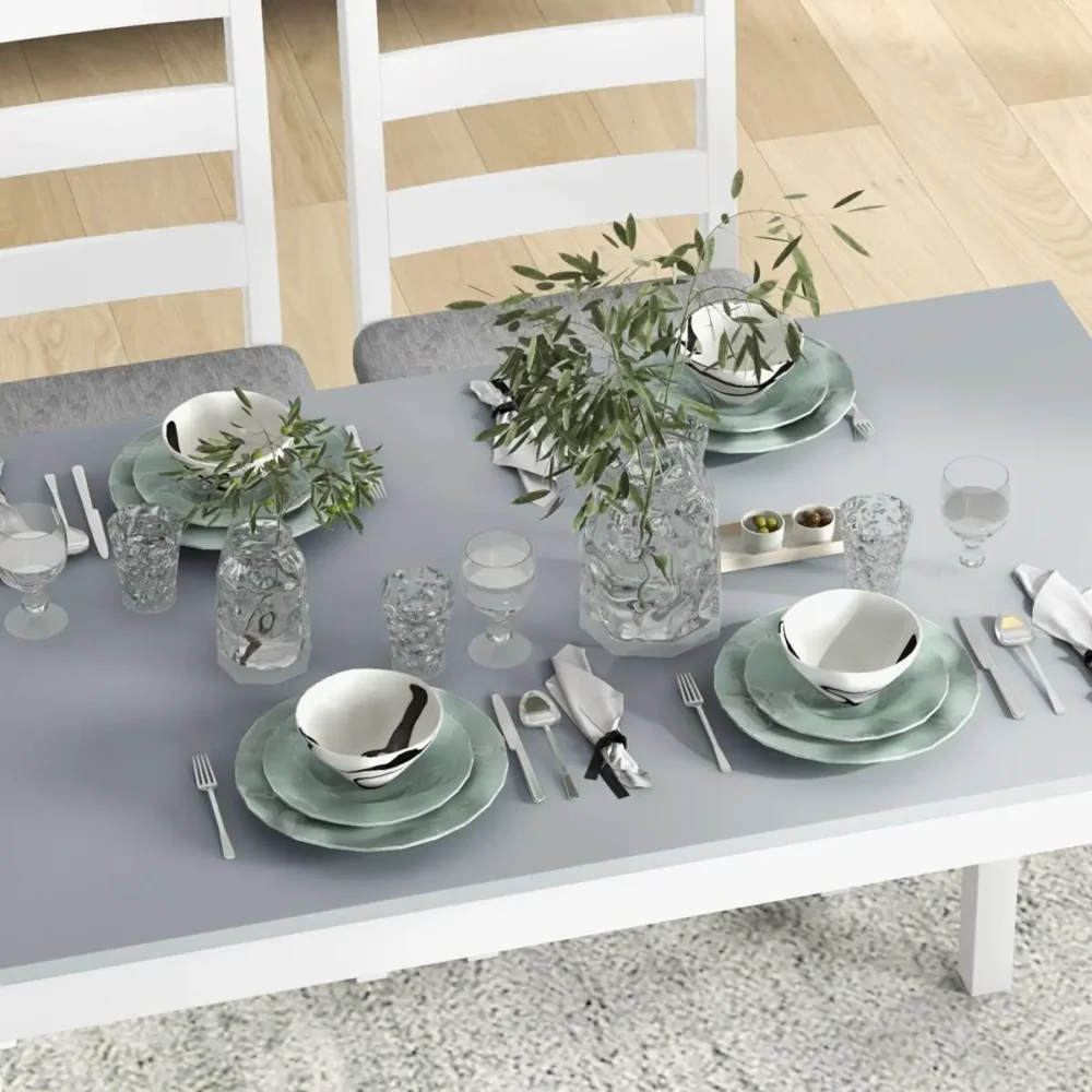 - Smart utrymmesoptimering: Den armlösa designen på stolarna och bänken gör det möjligt att skjuta in dem helt under bordet, vilket skapar en öppen och städad atmosfär när möblerna inte används.
