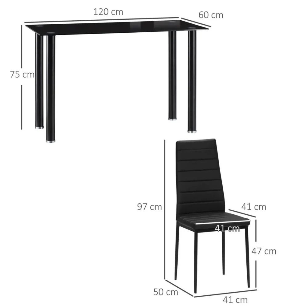 Bli först med att recensera ”Matgrupp med 4 Stolar och Matbord i Glas – Modern 5-delad Matsalsgrupp i Svart Konstläder och Härdat Glas – 120×60 cm”