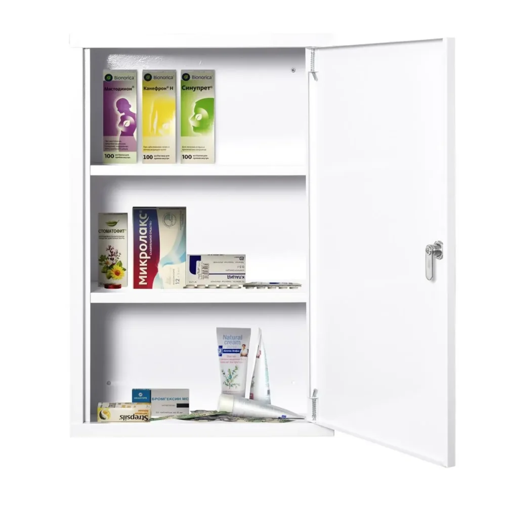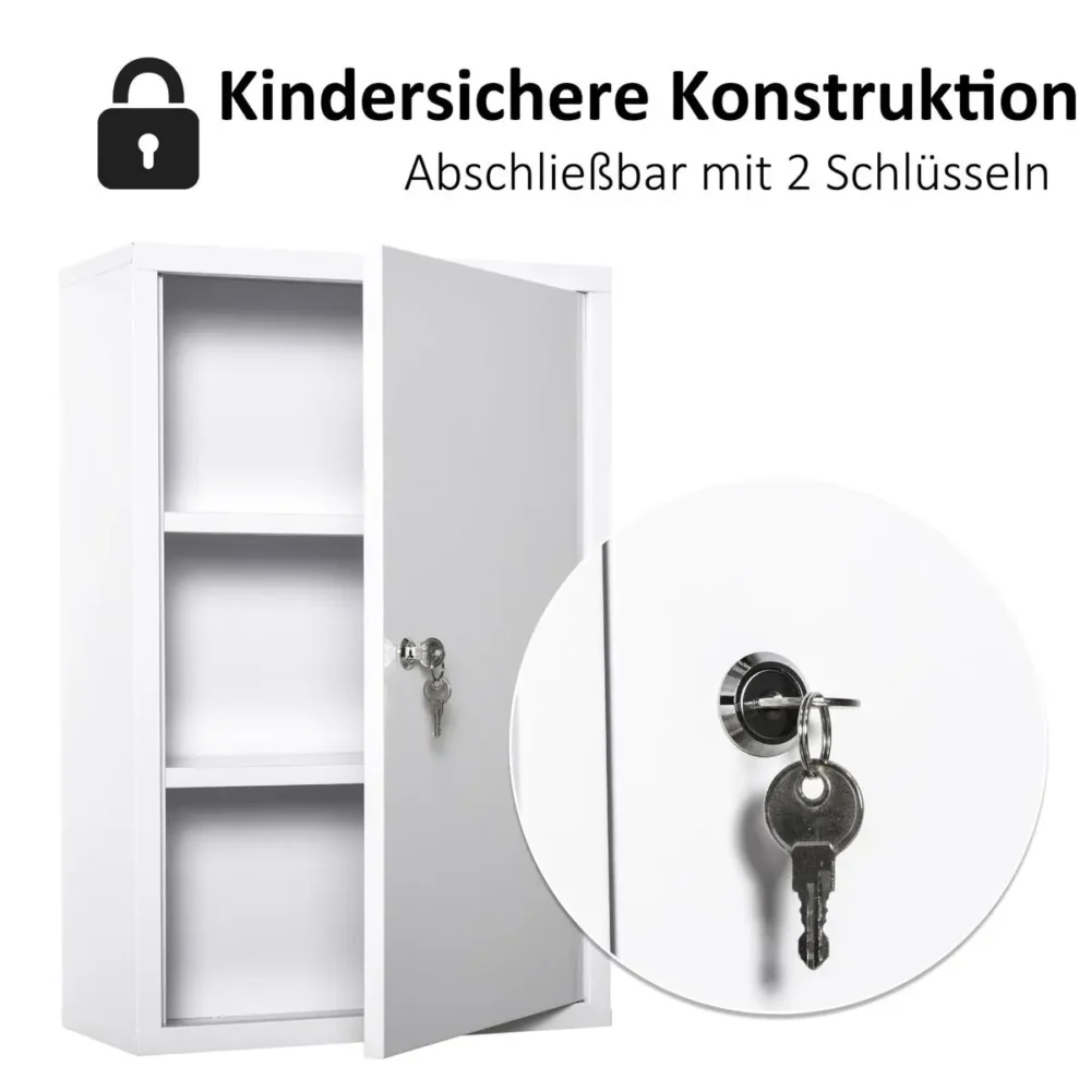 Skapa en tryggare hemmiljö med detta låsbara medicinskåp i vitlackerat stål. För hushåll med småbarn eller husdjur är säker förvaring av mediciner och receptbelagda läkemedel en absolut nödvändighet. Detta vägghängda apoteksskåp kombinerar funktionalitet med säkerhet, vilket gör det till den perfekta lösningen för att samla hemmets sjukvårdsartiklar på en och samma plats.