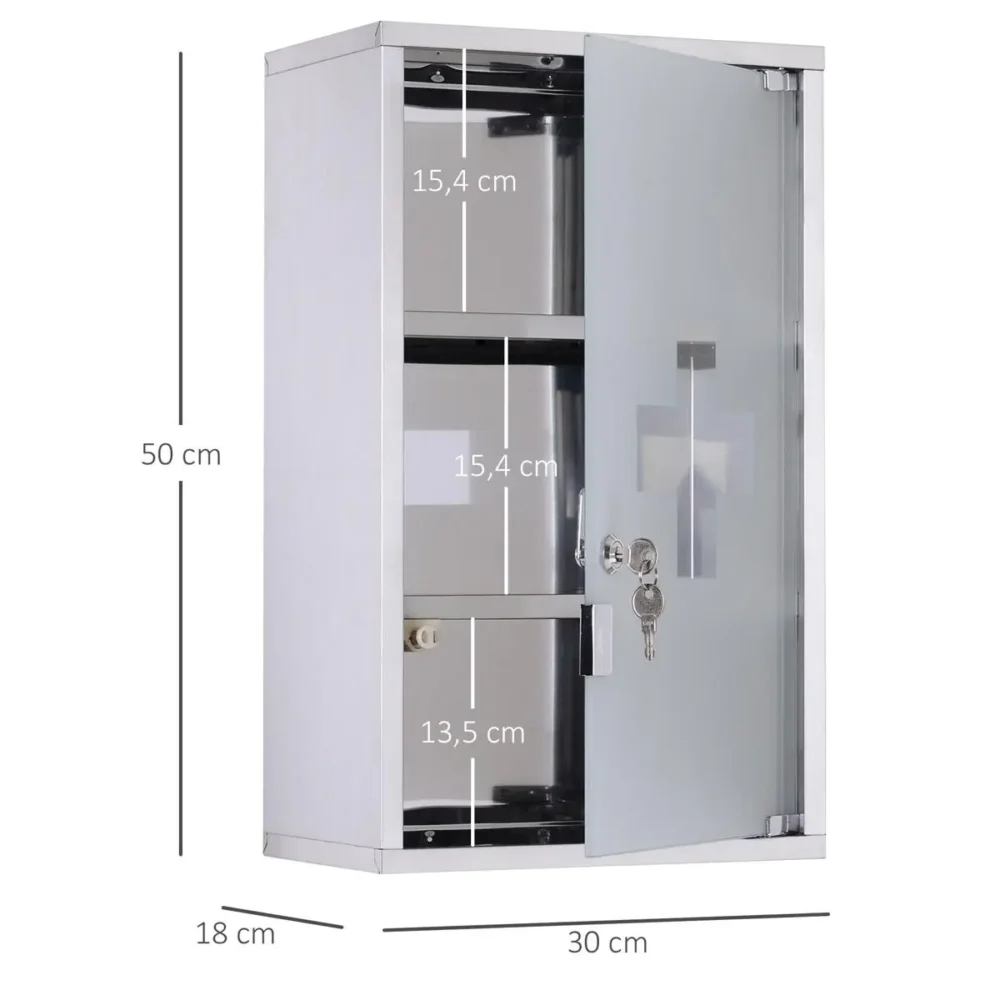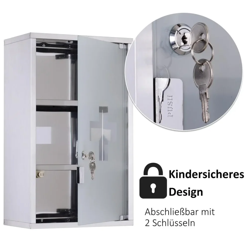 Bli först med att recensera ”Medicinskåp Rostfritt Stål Låsbart 30x18x50 cm – Väggskåp med Glasdörr & 3 Fack för Trygg Medicinförvaring”