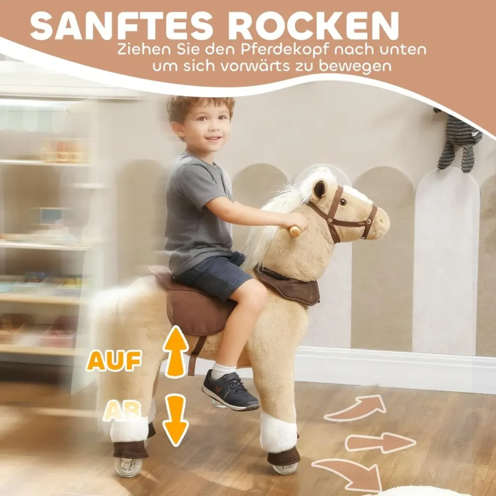 - Smidig styrning: Utrustad med handtag vid huvudet som gör det enkelt för barnet att navigera och styra sin häst på jämna ytor.